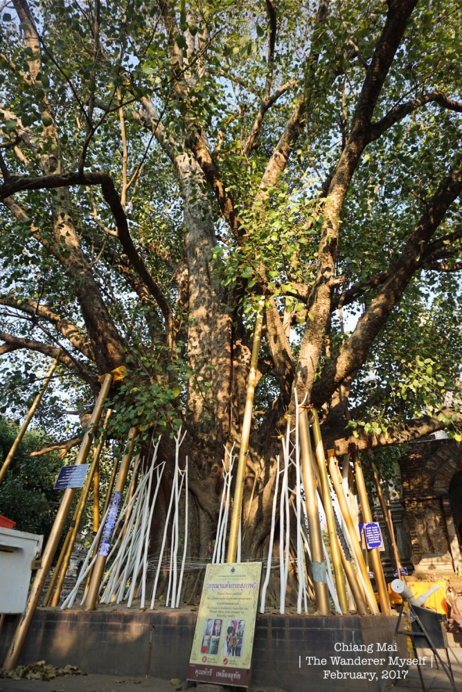 > ต้นมหาโพธิ์ โดยนำหน่อมาจากศรีลังกา มาปลูกในพระอารามนี้ จึงได้รับขนานนามว่า “วัดโพธาราม”หรือวัดโพธารามมหาวิหาร”  > ตะวันเริ่มจะลาลับขอบฟ้า เหมือนเป็นสัญญาณเตือนเราว่าเวลาของการมาชำแหละเชียงใหม่ในครั้งนี้กำลังจะหมดลง เราจึงบอกพี่คนขับให้ช่วยพาไปร้านอาหาร "สวนผัก" เพื่อขอทานอะไรก่อนขึ้นเครื่องกลับก่อนสักหน่อย