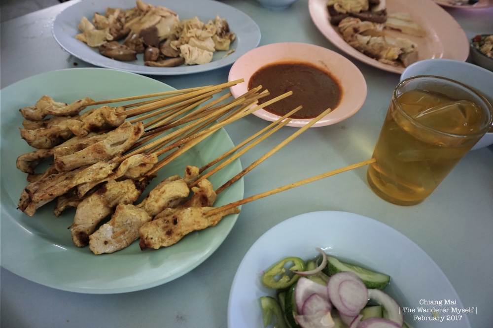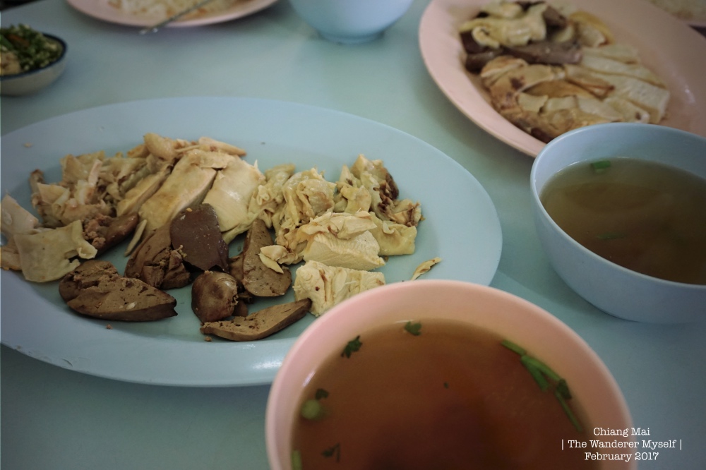 > และแล้วพี่เค้าก็พาเรามาแถวหลังอนุสาวรีย์สามกษัตริย์ ซึ่งแถวนี้จะมีร้านอาหารหลายร้านให้ได้เลือกตามความชอบ มีทั้งร้านก๋วยเตี๋ยว ร้านข้าวมันไก่ ฯลฯ และเราก็มาสะดุดและหยุดที่ร้านนี้กันค่ะ ข้าวมันไก่ สูตรไหหนาน "ร้านเกียรติโอชา" บอกได้เลยว่า ไก่เค้านุ่ม เน้น จัดเต็มมาก นอกจากนี้ยังมีไก่สะเต๊ะให้ได้ลิ้มชิ้มกันด้วย ที่สำคัญพนักงานรวมถึงเจ้าของร้านอัธยาศัยดีและบริการดีมาก