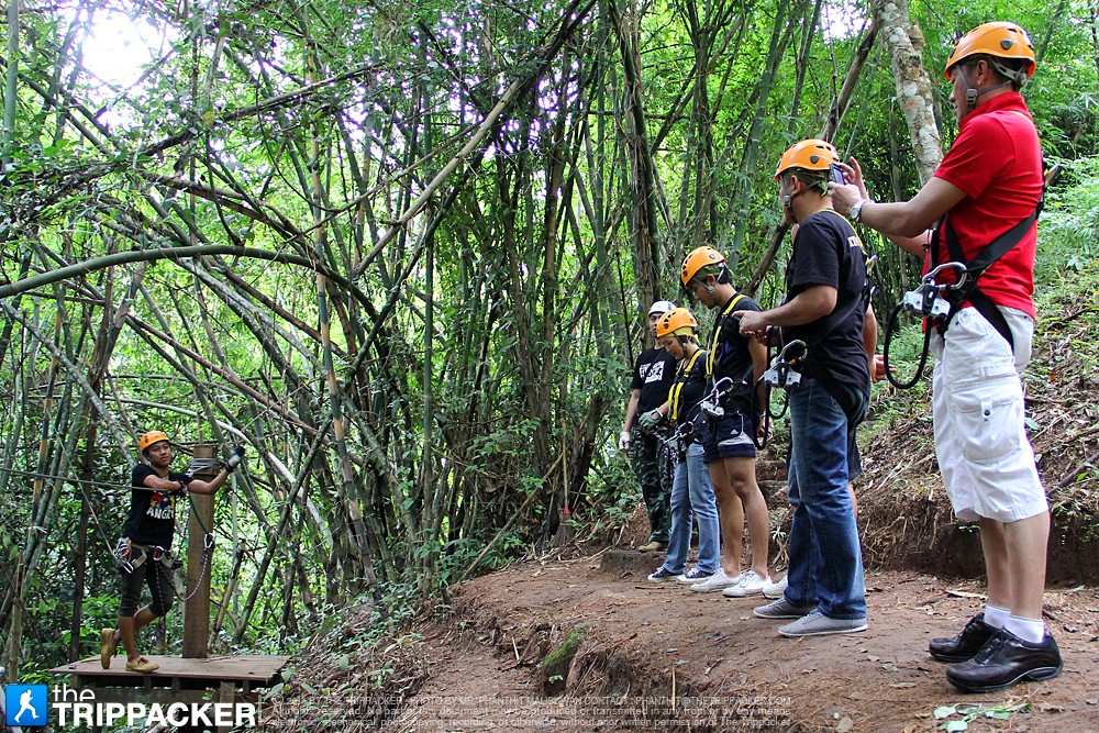 โดยปกติผู้ที่สามารถเล่นกิจกรรมแบบนี้ได้นั้นเริ่มตั้งแต่เด็กที่มีส่วนสูง 100 เซนติเมตรขึ้นไปจนถึงผู้ใหญ่อายุ 80 ที่ยังคงฟิตปั๋งทั้งใจและกาย ส่วนพวกเราคนหนุ่มคนสาวก็อย่าให้อายเด็กรีบแสดงความกล้าท้าความกลัวแม้ว่าขาจะสั่นรัวยังไงก็ต้องผ่านไปให้ได้ ว่าแล้วอย่ารีรอเริ่มต้นกันที่สถานีแรกซึ่งเป็นการโหนสลิง จากต้นไม้ต้นหนึ่งไปสู่อีกต้นหนึ่งในระดับความสูงที่เรียกว่ายังจิ๊บๆ ทั้งนี้ระดับของความตื่นเต้นก็มีเพิ่มขึ้นเรื่อยๆ พร้อมกับหัวใจที่เต้นรัว จนกระทั่งมาถึงสถานีที่ถือเป็นไฮไลต์ของการโหนสลิง ซึ่งมีความยาวประมาณ 800 เมตร บนความสูงจากด้านบนถึงพื้นล่างคำนวณออกมาก็ 100 เมตรพอดิบพอดี ซึ่งในระหว่างตัวกำลังลอยอยู่กลางอากาศก็สามารถมองเห็นทิวทัศน์ธรรมชาติป่าเขาได้อย่างเต็มสองตา แต่สำหรับเราดูเหมือนว่าหัวใจจะทำงานดีกว่าสายตามากไปซักหน่อย และจริงอยู่ที่เราได้ผ่านจุดที่ยาวมากที่สุดมาแล้ว แต่ความตื่นเต้นในจุดอื่นๆ ก็ไม่ได้ลดน้อยไปกว่ากัน หนำซ้ำบางจุดอาจจะกระตุ้นอะดรีนาลีนได้มากกว่าเสียอีก
