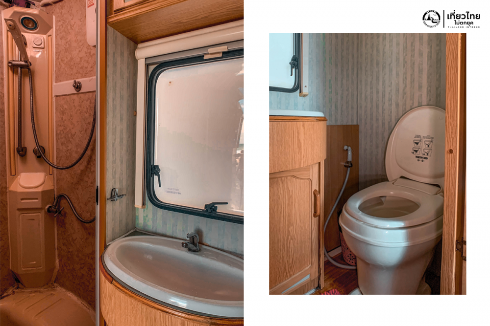 มีห้องน้ำในตัวรถบ้านทุกคันด้วยนะ สะดวกสบายมาก