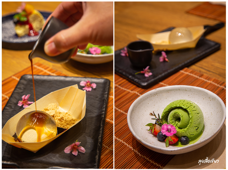 ตบท้ายด้วยของหวานอย่าง Mee Zu Mochi เสิร์ฟพร้อมผงถั่วฮินาโกะ และน้ำตาลอ้อย อร่อยดีทีเดียว เมนูนี้ 145 บาทครับ นอกจากนี้ยังมี Green tea Ice Cream กลิ่นชาเขียวเข้มข้นมาก เพิ่มรสชาติหวานเปรี้ยวด้วยสตรอว์เบอร์รี และบลูเบอร์รี เมนูนี้ 90 บาท