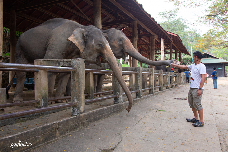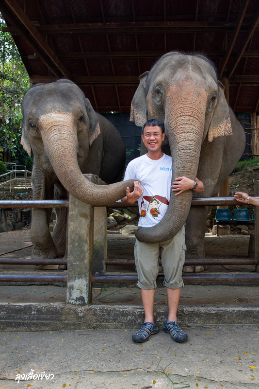 เมื่อเราให้อาหารช้างหมดแล้ว ควาญช้างก็จะสั่งให้ช้างขอบคุณ โดยการเอางวงมาโอบรัดเรา เห็นแล้วก็น่าเอ็นดูจริงๆ