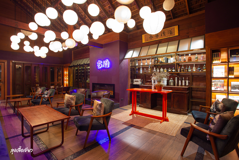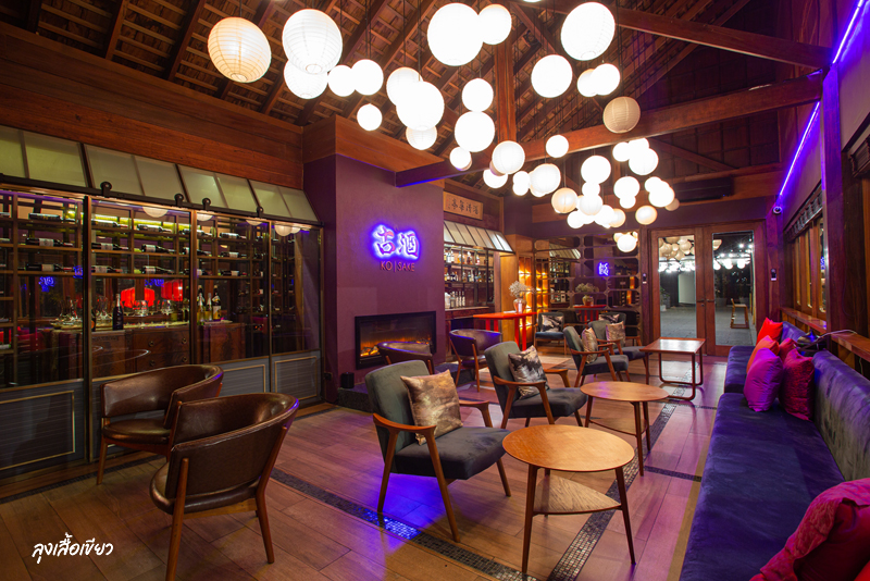 ภายในห้อง Ko Sake ยิ่งต้องแสงไฟยิ่งสวยงาม ผมชอบการออกแบบโคมไฟ ให้ความรู้สึกเหมือนได้แวดล้อมอยู่ในดวงดาวครับ