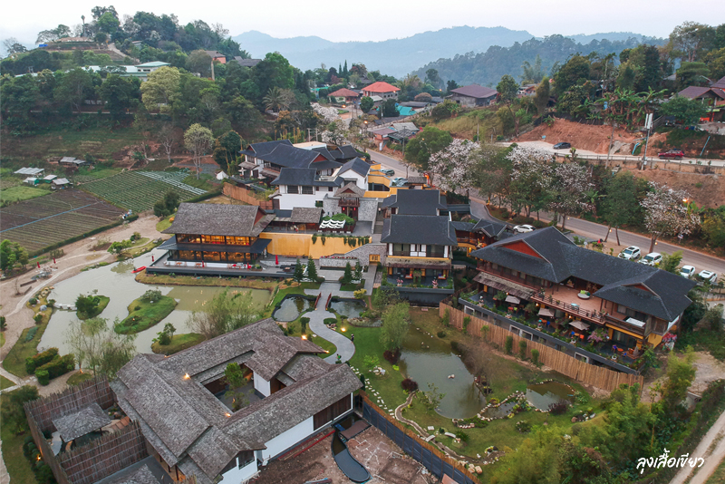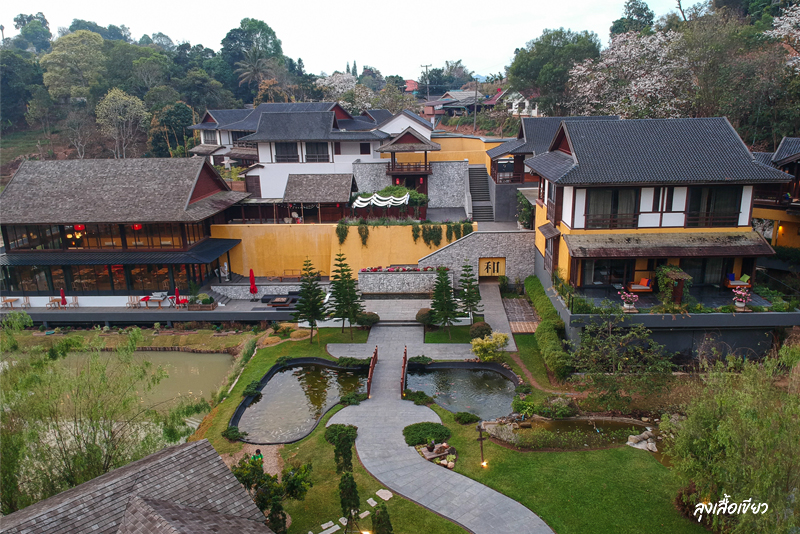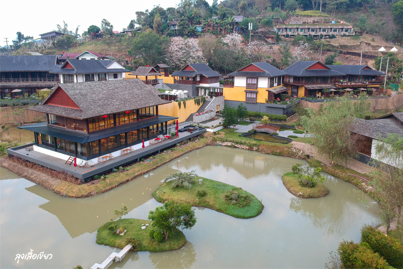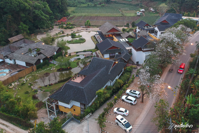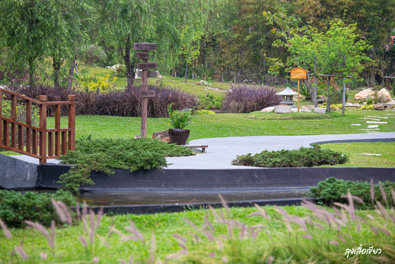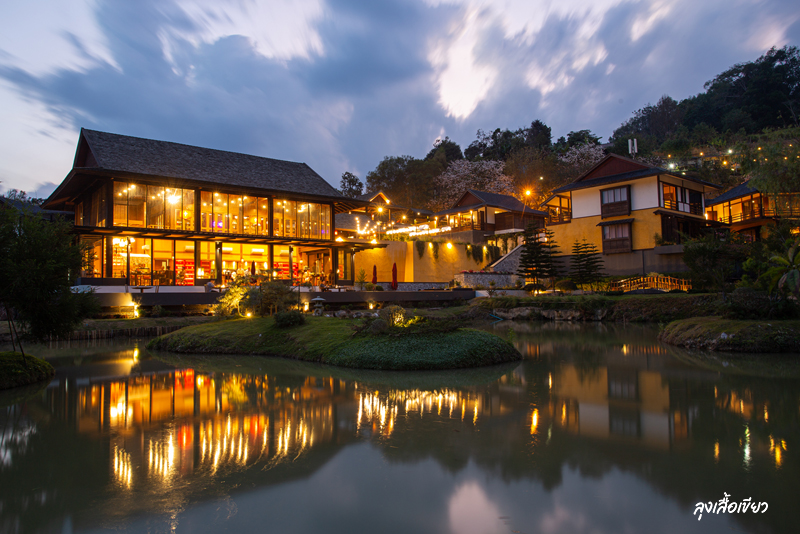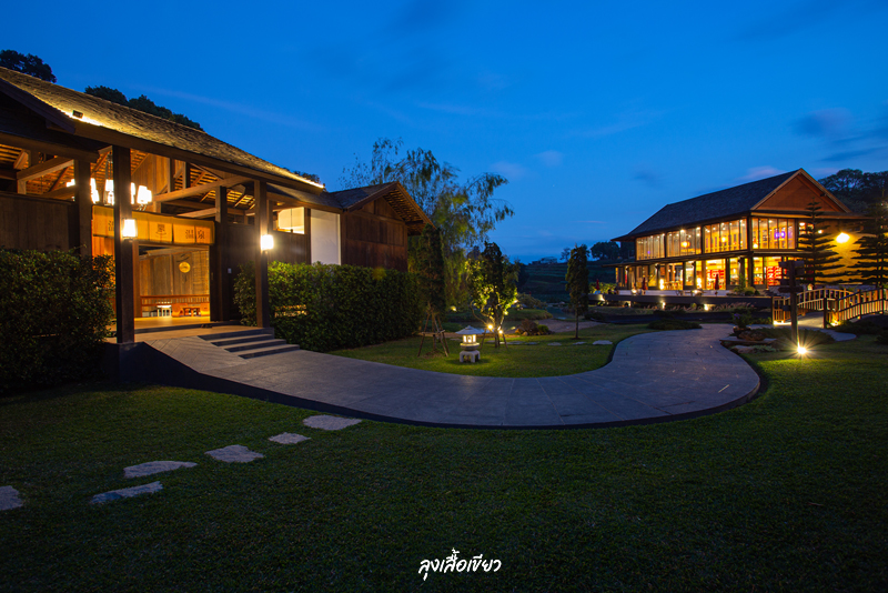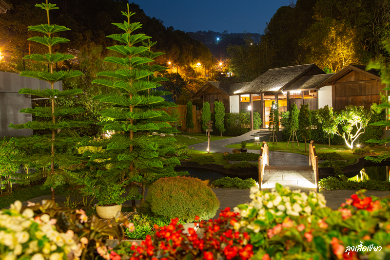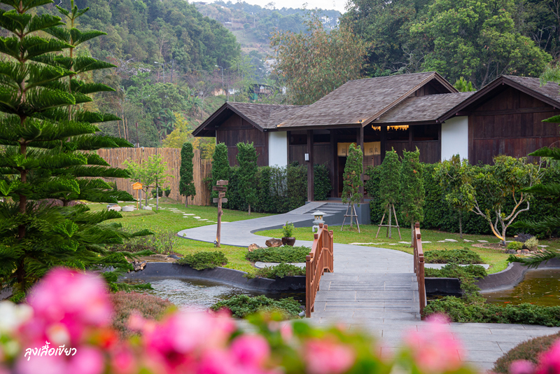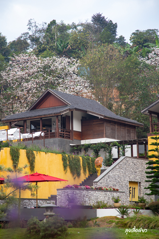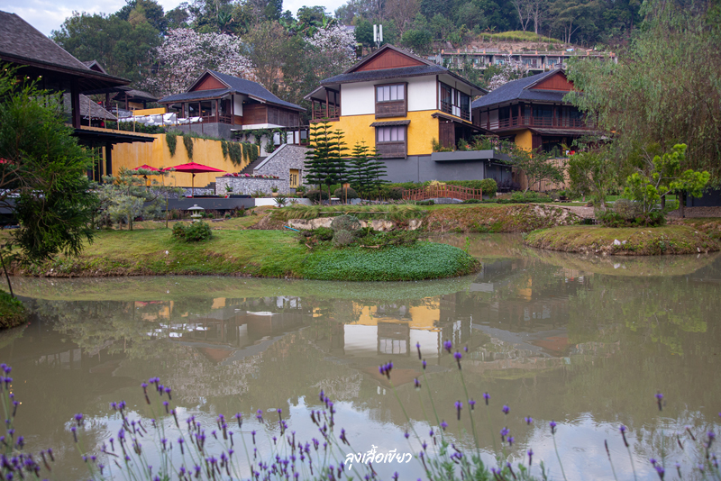 ต้นซากุระที่เห็นมุมขวามือของภาพล่าง เป็นต้นซากุระที่สมเด็จพระเทพฯ ทรงปลูกไว้ตั้งแต่ช่วงรีสอร์ทเปิดใหม่ๆ เห็นว่าปีนี้ออกดอกสะพรั่งเลยครับ