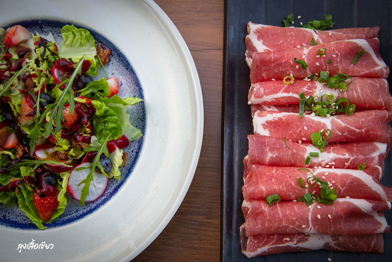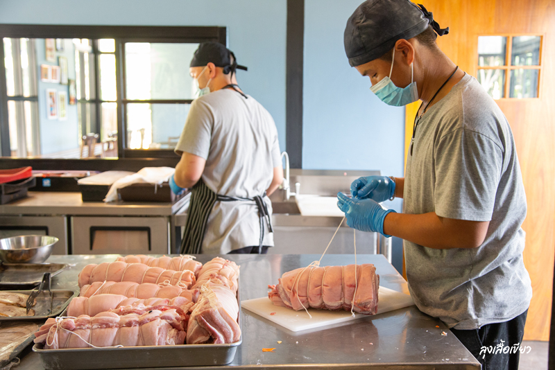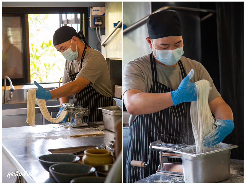 เนื่องจากเป็นครัวเปิด ผมเลยได้เห็นเชฟกำลังรีดเส้นและทำหมูชาชูพอดีครับ