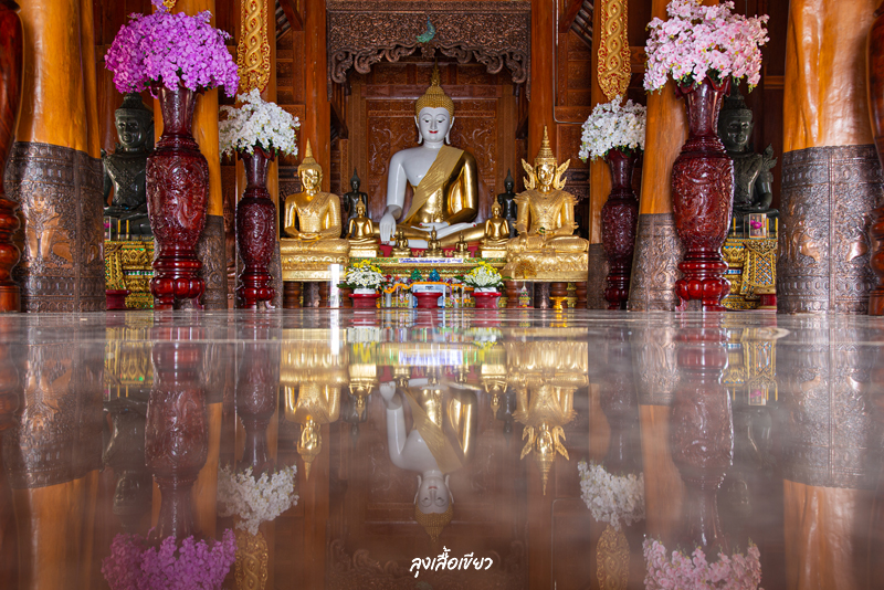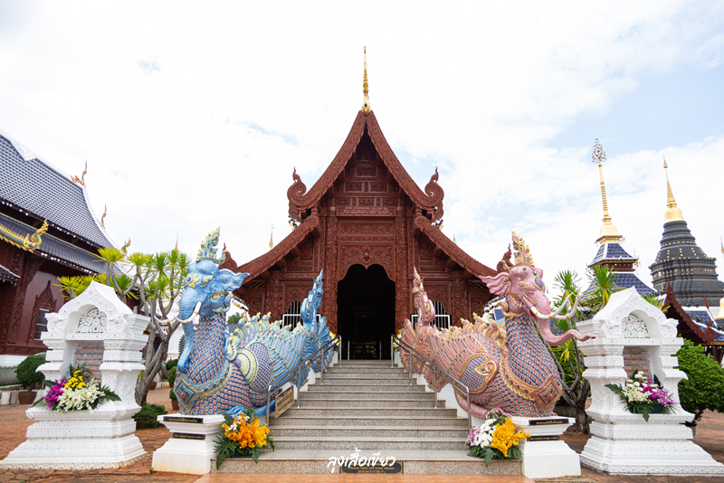 ถัดจากรูปหล่อพระครูบาเจ้าเทือง นาถสีโล เป็นหอพระธรรม ลวดลายละเอียดอ่อน งดงามมากๆ ครับ