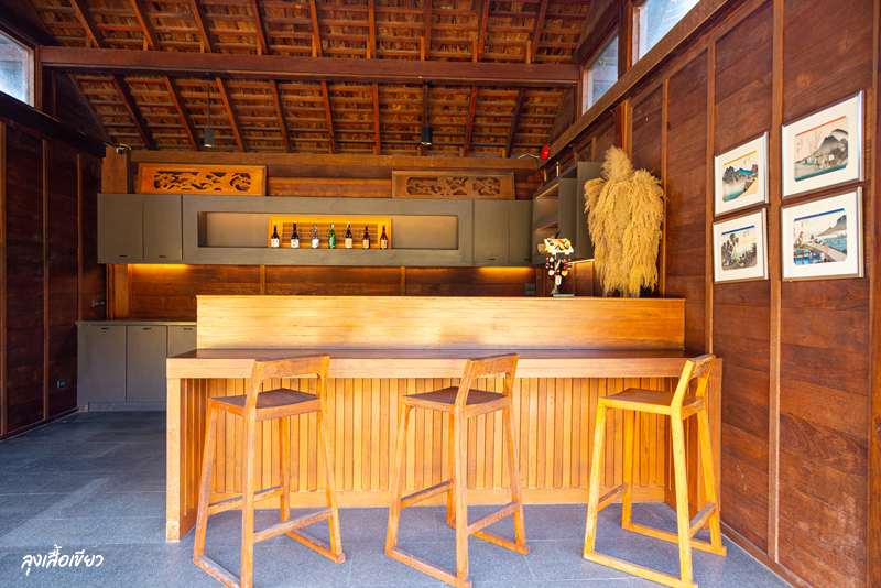 พื้นที่นั่งทาน จะอยู่ทางปีกซ้ายและขวาของร้าน ส่วนตรงกลางจะเป็นครัวแบบเปิดครับ และด้านในสุดของพื้นที่นั่งทาน จะมีบันไดให้เดินขึ้นไปด้านบนได้ครับ
