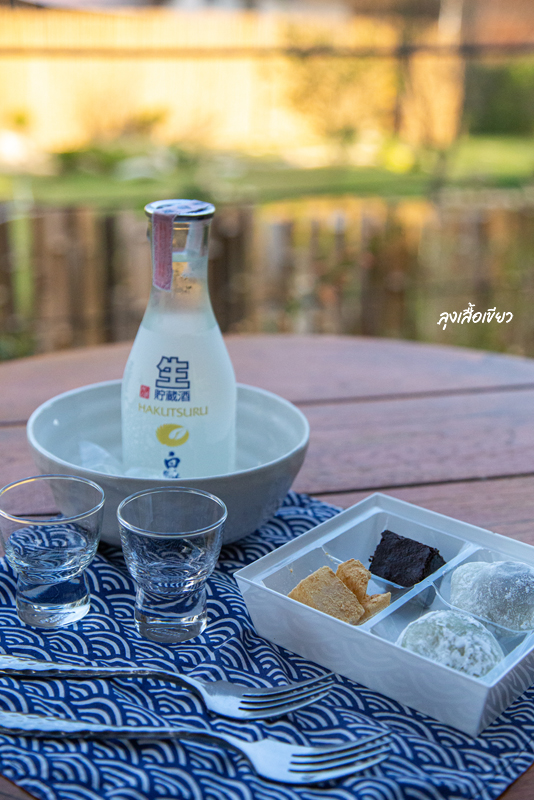 เมื่อคลี่ผ้าออกมา จะมี ไดฟุกุ วาราบิโมจิ และบราวนี่ น้องบอกว่า วาราบิโมจิและบราวนี่เป็น signature ของที่นี่ครับ
