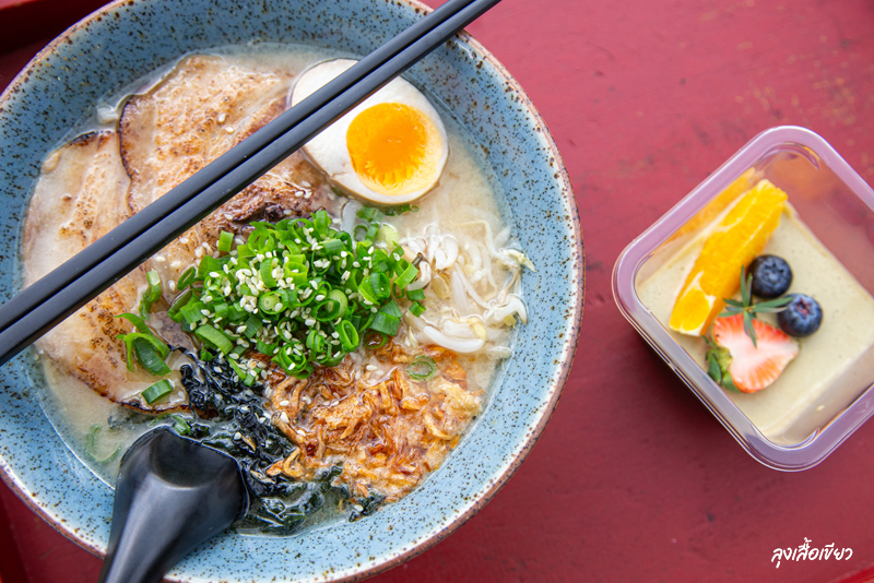 ราเม็งที่ Yama Ramen มี 3 น้ำ เริ่มที่ Tonkotsu Ramen รสชาติเข้มข้น หอมกลิ่นน้ำซุปกระดูกหมูมากๆ โรยหน้าด้วยขิงดองที่นำเข้าจากญี่ปุ่นครับ