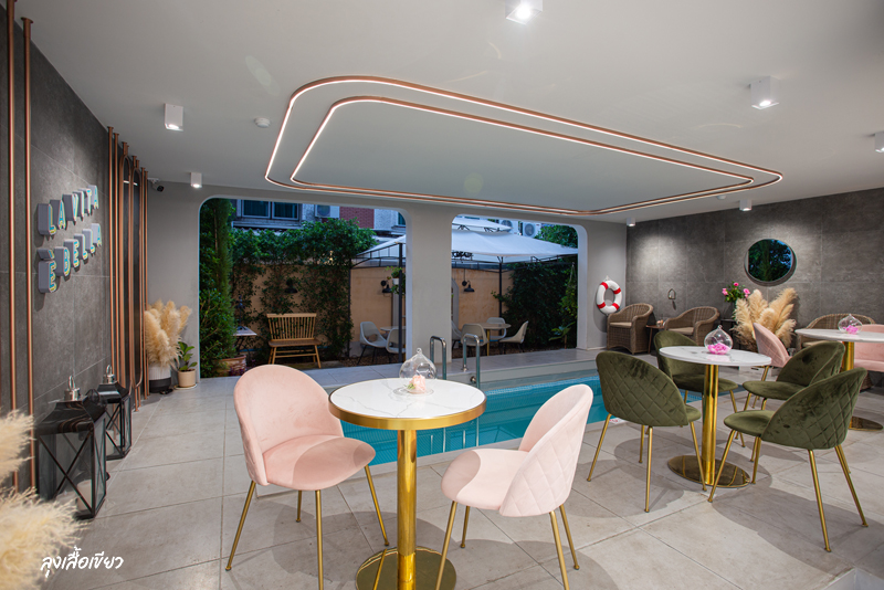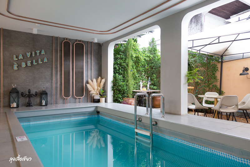 นอกจากจะมีสวนสวยแล้ว ยังมีสระว่ายน้ำในร่มด้วยนะครับ ผมไม่รู้หรอกว่าจะมีแขกมาว่ายน้ำกันเยอะไหม แต่รู้ว่ามีแขกมาถ่ายรูปเก๋ๆ ริมสระว่ายน้ำกันเยอะมากครับ