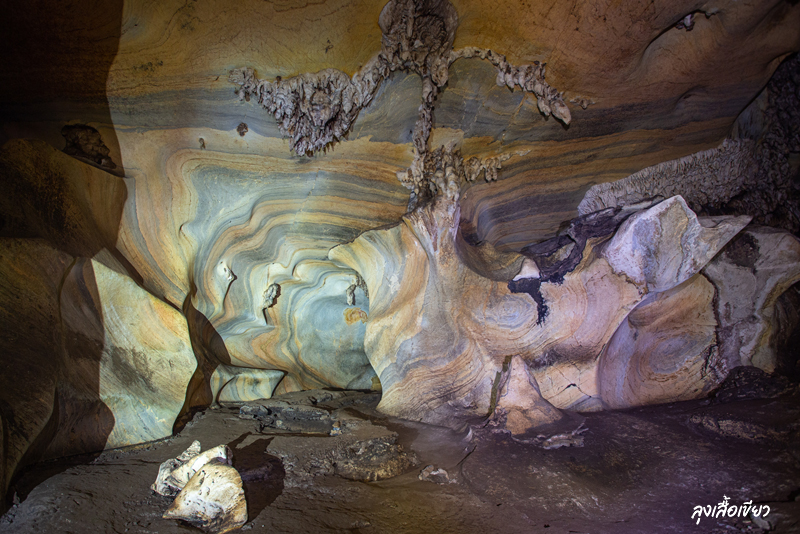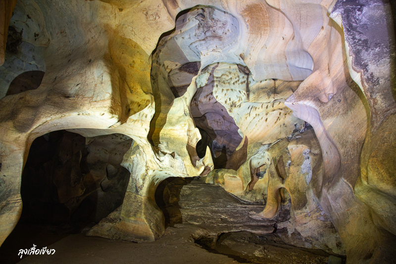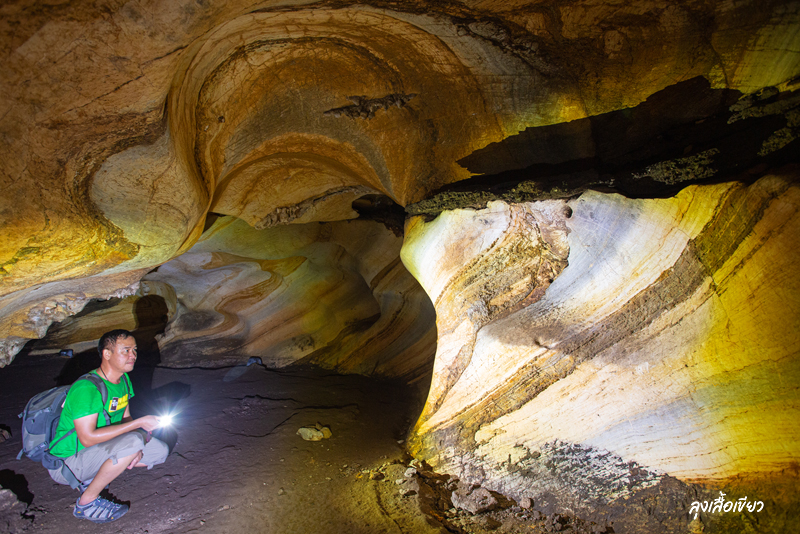 จุดที่เป็นไฮไลท์อยู่ที่ชั้นล่าง ภายในถ้ำไม่มีแสงไฟส่องสว่างนะครับ คงต้องพกไฟฉายไปเอง หรือถ้าใครไม่ได้พกไป สามารถเช่ากับเจ้าหน้าที่ได้ ในราคา 20 บาทครับ