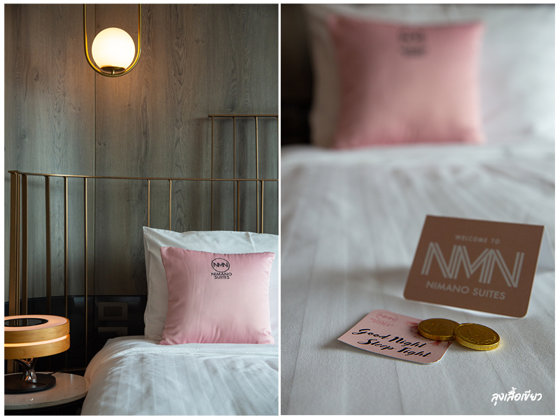 ไปดูในห้องพักกันบ้าง ห้องพักที่ผมพักเป็นห้อง Nimano Suite พื้นที่ใช้สอยในห้องกว้างขวางเลยครับ ในห้องแบ่งพื้นที่หลักๆ เป็น 4 ส่วน ส่วนที่นอน ส่วนนั่งเล่น ส่วนแต่งตัว และห้องน้ำครับ เตียงนอนหนา นุ่ม นอนสบายมากครับ