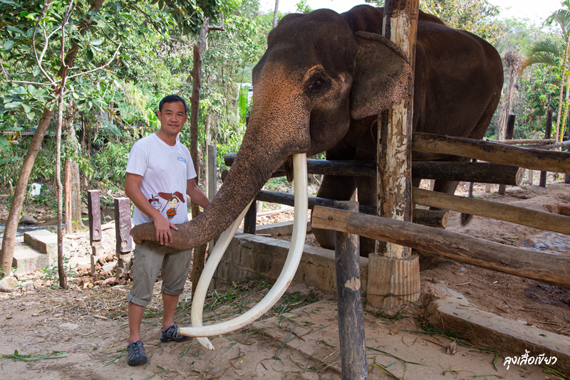 พลายหนึ่ง ช้างพลายงายาว อายุเกือบ 40 ปีแล้ว พลายหนึ่งไม่หวงงาครับ ควาญช้างบอกว่าสามารถเข้าไปจับงาเพื่อความโชคดี จะได้โชคได้ลาภครับ