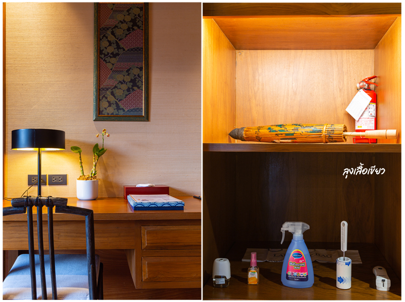 สิ่งเล็กๆ น้อยๆ ที่นี่ก็ให้ความสำคัญ มีทั้งอุปกรณ์กันยุง สเปรย์ขจัดกลิ่น ลูกกลิ้งกำจัดขนต่างๆ บนเสื้อผ้า เตรียมไว้ให้พร้อม แถมยังมีร่มไม้ เป็นพร็อพสำหรับถ่ายภาพด้วยครับ