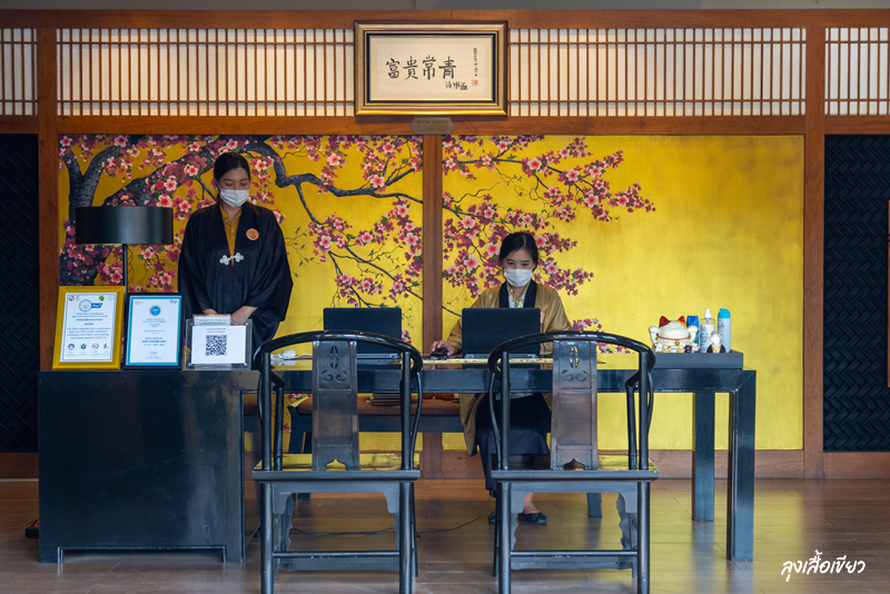 จากลานจอดรถด้านหน้ารีสอร์ท เดินเพียงไม่กี่ก้าวก็ถึงลอบบี้แล้ว น้องๆ พนักงานต้อนรับอ่อนน้อมมากๆ การเข้าพักที่นี่ แขกที่มีอายุมากกว่า 12 ปี ต้องแสดงหลักฐานการรับวัคซีนโควิดมาแล้วอย่างน้อย 2 เข็มนะครับ พร้อมตรวจคัดกรองด้วยการวัดอุณหภูมิตรงด้านหน้าลอบบี้ ถือเป็นการกรองแขกได้ในระดับหนึ่งครับ สำหรับพนักงานในรีสอร์ทเองก็เห็นว่าต้องฉีดวัคซีนขั้นต่ำ 2 เข็มเช่นกันครับ