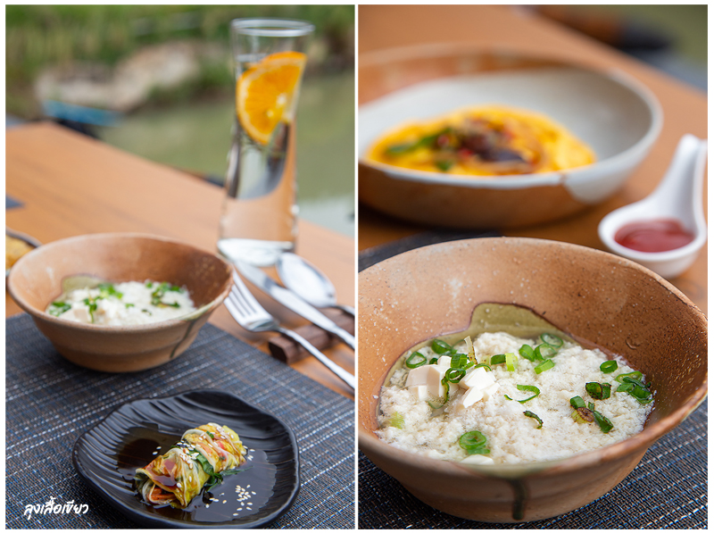 Vegetable rolls (สลัดโรล) และ Egg white congee miso (โจ๊กมิโซะเสริฟพร้อมไข่ออนเซ็น)