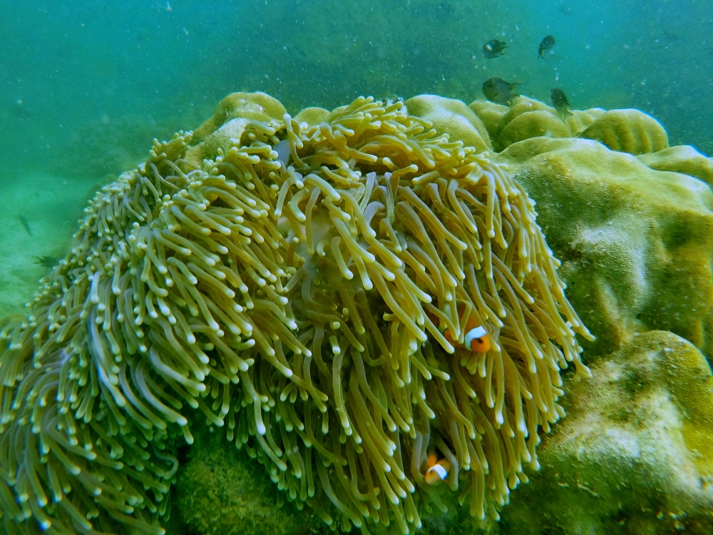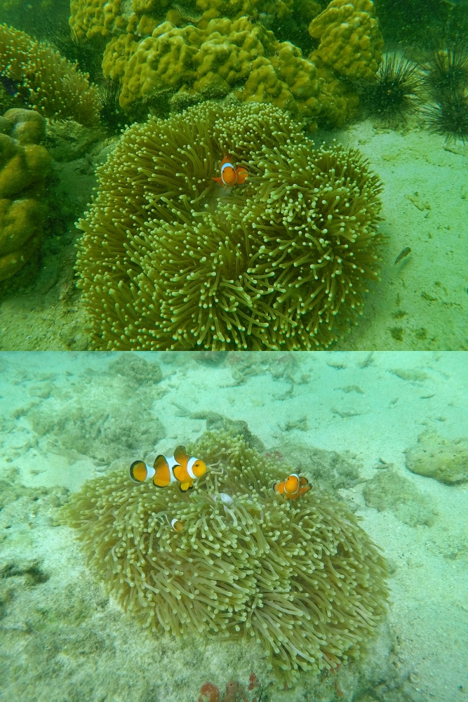 ถึงจะเจอน้ำขุ่นไปหน่อยแต่ก็ยังได้เจอ บ้านนีโม่หลายหลังเลยนะ นีโม่ตัวน้อยแต่ละหลังจะอยู่ถึง 3-4 ตัวเลย ออกมาต้อนรับกันเยอะเชียวนะนีโม่น้อย