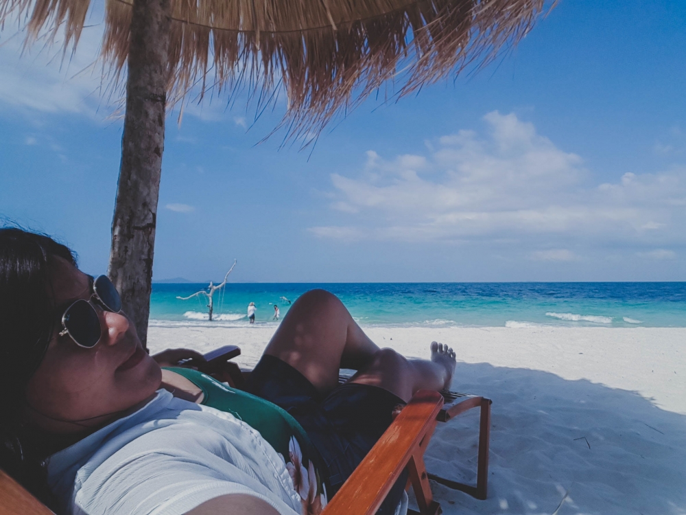 เต็มอิ่มจากมื้อเที่ยงมานอนพักผ่อนฟังเสียงคลื่นตามซุ้มหน้าหาด