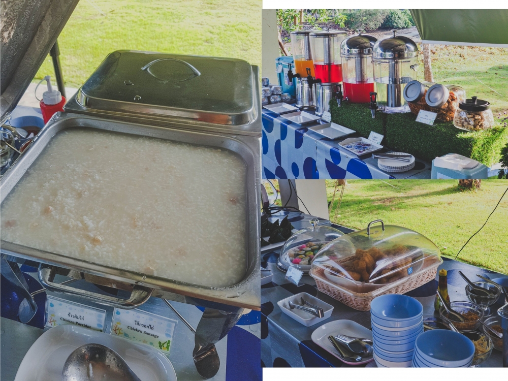 ที่ท่าเรือก็จะมีเครื่องดื่ม ขนมไทย ข้าวต้มไก่ ใส้กรอก ขนมปังปิ้ง ไว้รองท้องในมื้อเช้ากันด้วยนะ