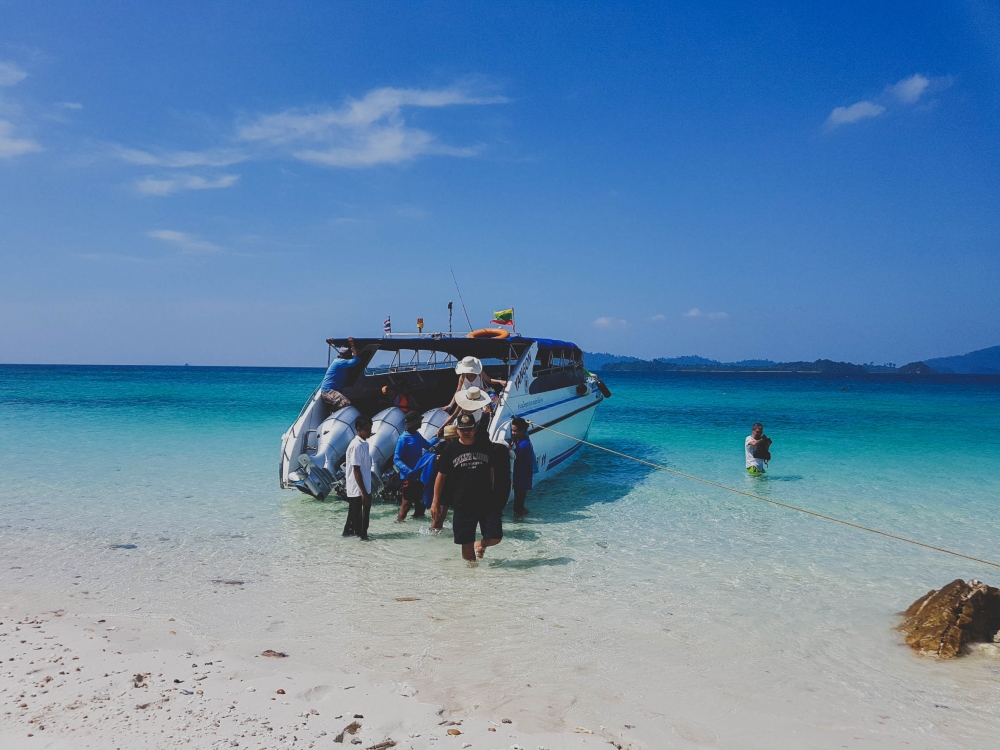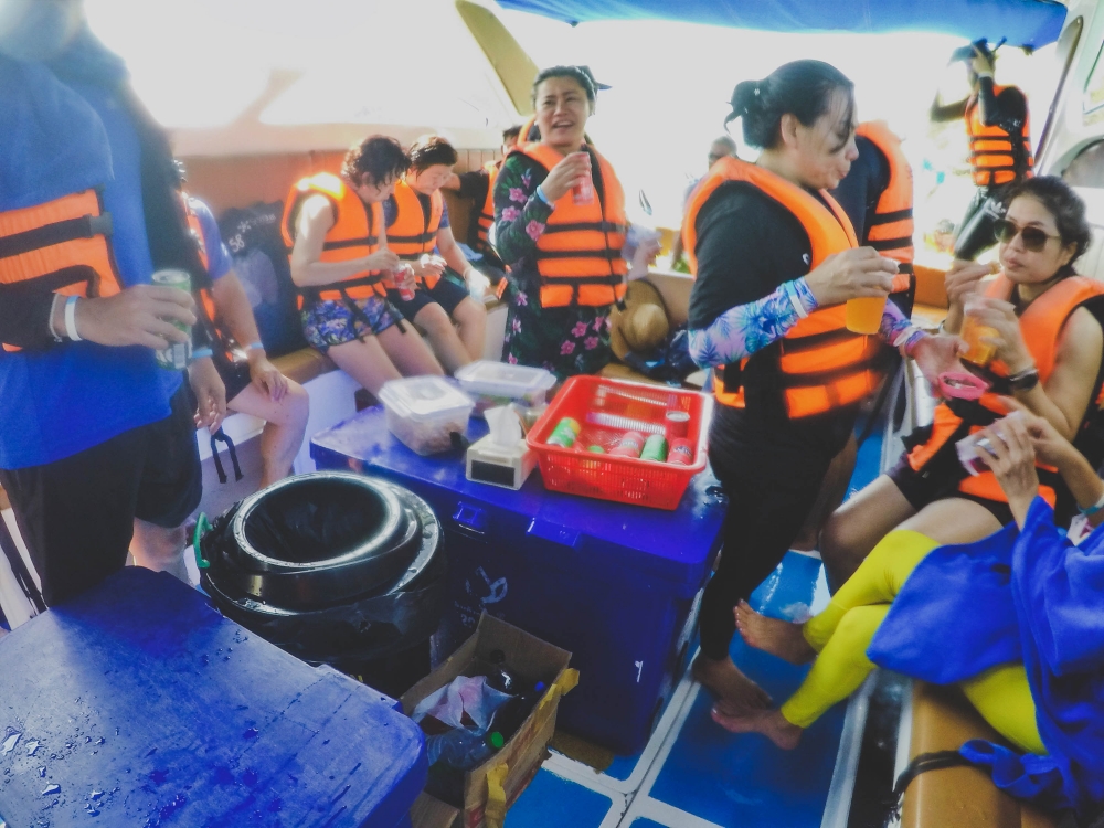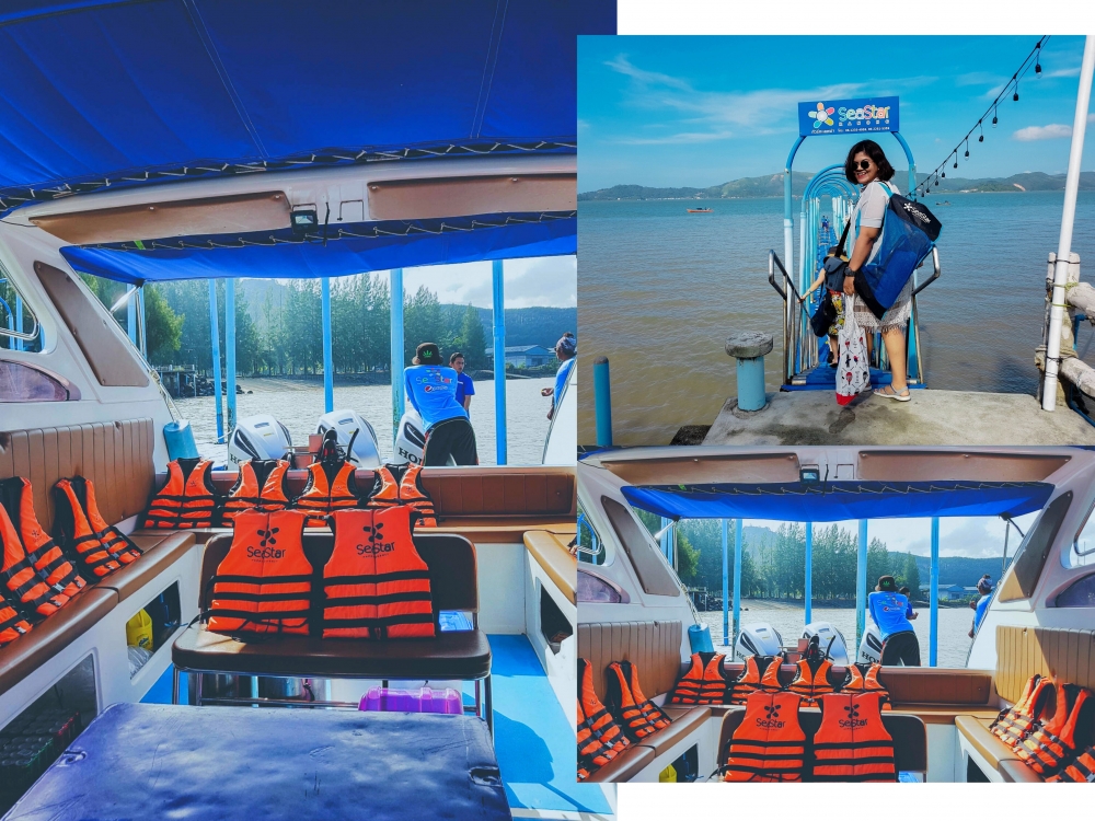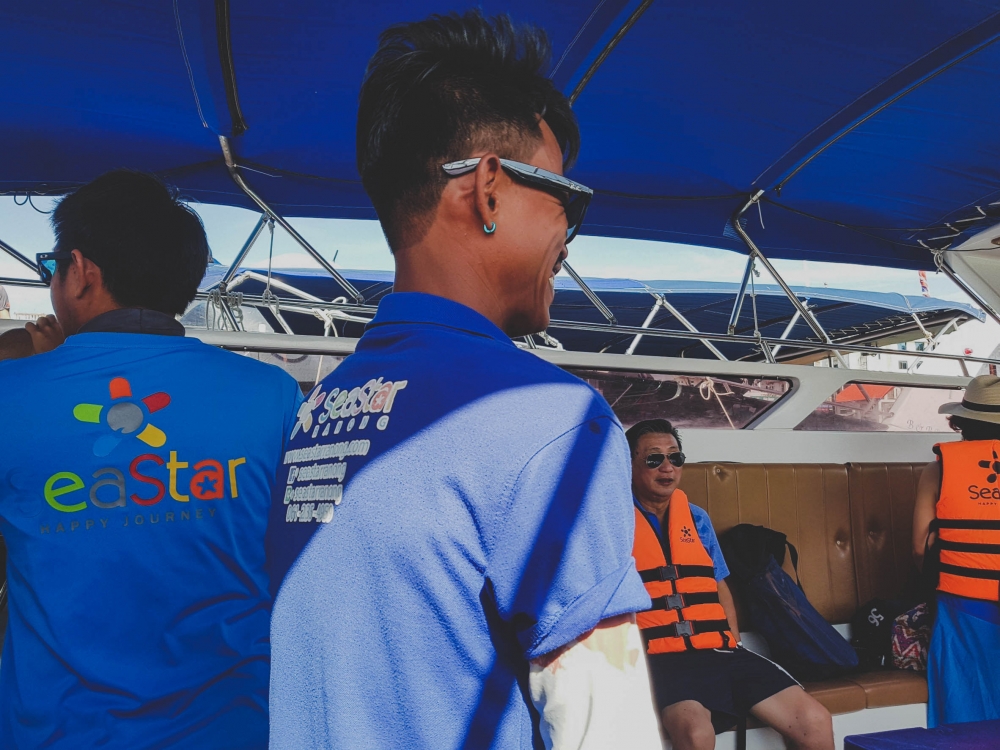 เมื่อเอกสารพร้อม ไกด์พร้อม นักท่องเที่ยวพร้อม ก็ไปขึ้นเรือสปีดโบ้ทที่จอดรอพวกเรากันเลย เมื่อขึ้นมาบนเรือก็จะมีเสื้อชูชีพให้กับนักท่องเที่ยวเพื่อความปลอดภัยในการเดินทางทางทะเลกันเด้อจ้า