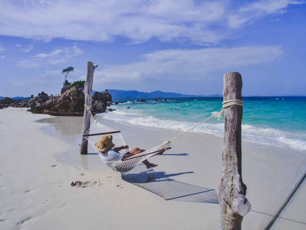 เต็มอิ่มจากมื้อเที่ยงมานอนพักผ่อนฟังเสียงคลื่นตามซุ้มหน้าหาด