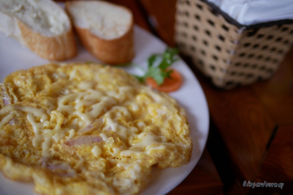 อาหารจะมีกาแฟ ชา น้ำผลไม้ และอาหารจานๆให้เราสั่ง เค้าจะไปทำมาเสริฟให้จ้า เมนูก็จะมีพวก อาหารเช้าไข่ดาวขนมปัง, ออมเลทเบค่อนชีส, ออมเลทแฮมชีส, เฝอไก่, เฝอเนื้อ, แพนเค้กกล้วยหอม