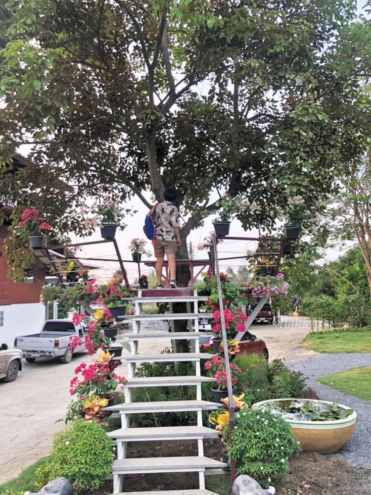 อันนี้เป็นบันได ขึ้นไปด้านบนต้นไม้ และมีทางลงไปศาลาในน้ำ