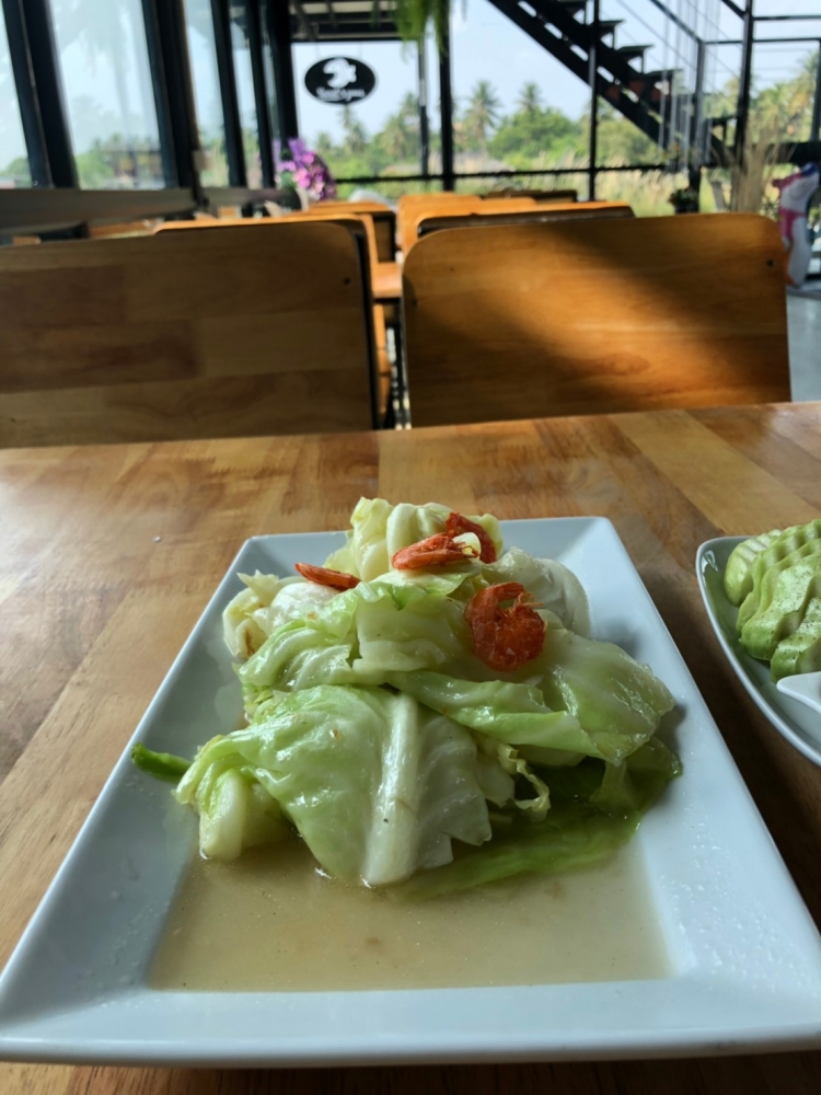 จานแรกเป็นกะหล่ำปลีผัดน้ำปลา