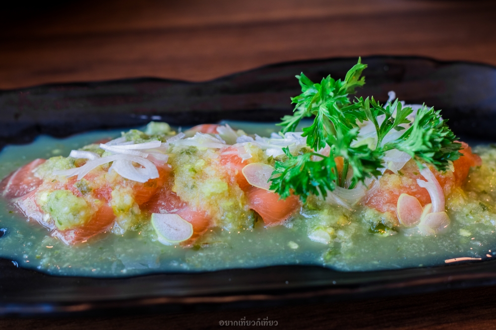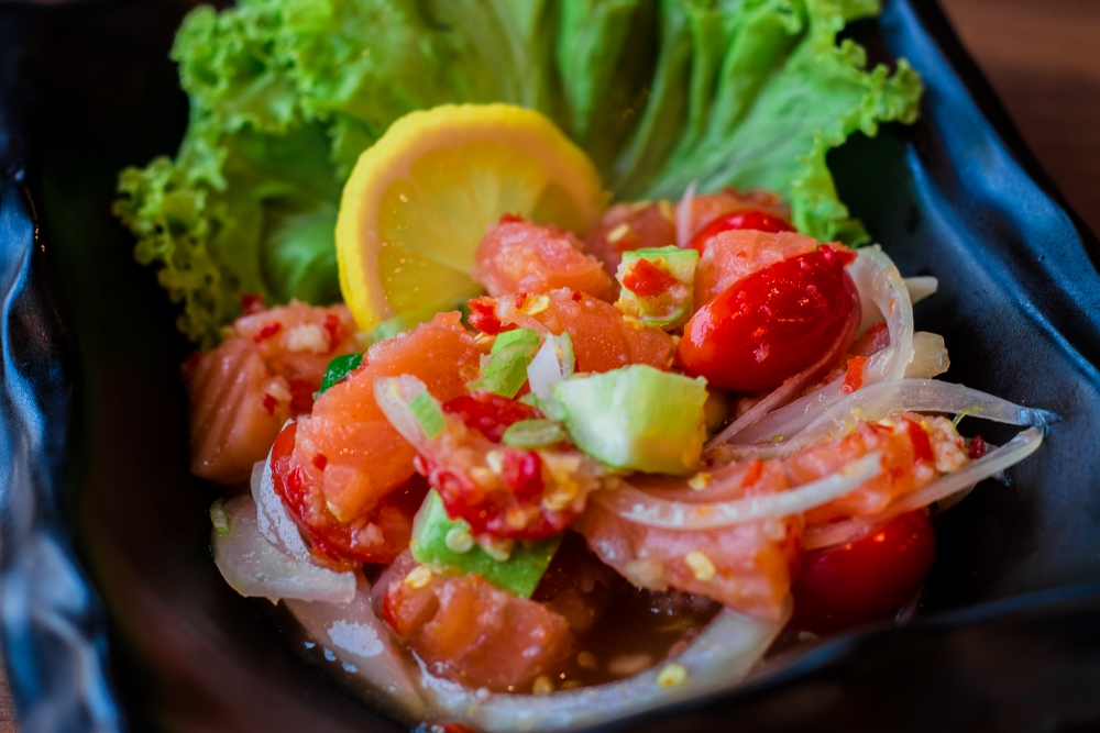 เมนูเรียกน้ำย่อย ยำแซลมอนแซบๆ แซลมอนสดมาก รสชาติถูกปาก