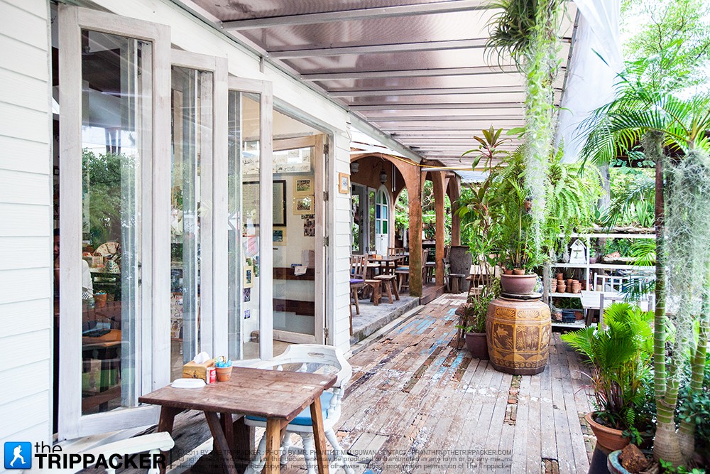 ก่อนกลับต้องขอเดินชมรอบๆ ร้านเป็นการย่อยสักหน่อย เพราะสวนในร้านนั้นถูกจัดแต่งไว้สวยมาก ทั้งร่มรื่นเย็นสบายจนเราอยากฝังกายอยู่ที่นี่นานๆ นอกจากสวนสวยๆ ที่เป็นจุดเด่นแล้ว พื้นที่ด้านในร้านยังมีมุมน่ารักๆ ให้เลือกนั่งอีกมาก แถมด้วยส่วนโชว์ภาพเขียนฝีมือเจ้าของร้านล้วนๆ ซึ่งเปิดให้เข้าชมได้แบบไม่มีหวง ถ้าใครไม่รีบไปเที่ยวที่ไหนต่อก็ลองหามุมเหมาะๆ จิบกาแฟ กินของว่าง อ่านหนังสือสักเล่ม เล่นอินเตอร์เน็ตให้เพลิน แต่ระวังเพลินจนเผลอหลับแบบเรานะครับ ก็บรรยากาศมันสบายจนลืมตัวนี่นา