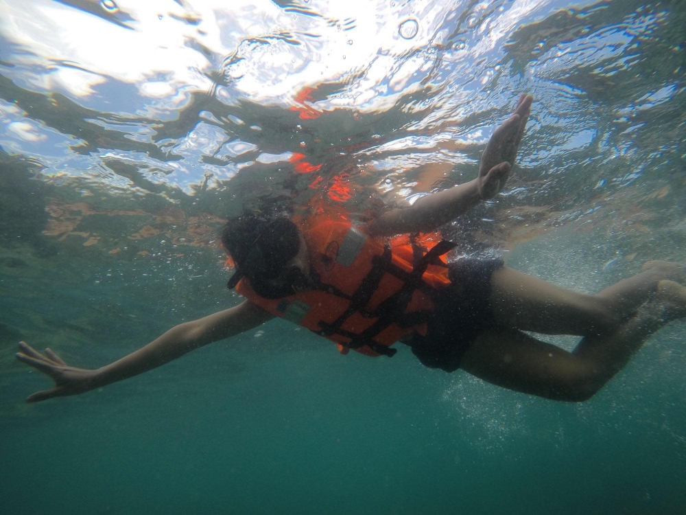 ชื่อภาพ : รำให้ปลามันดู้ /ทางทัวร์มีบริการถ่ายรูปใต้น้ำ ฟรี! กี่รูปก็ได้เรียกมาเลยจ้าา ต้องตั้งสติและจังหวะให้ปังปังนะคุณ รูปนี้คือปลาหนีกรูหมด สวยสวยคนเดียวเลยยโถ่