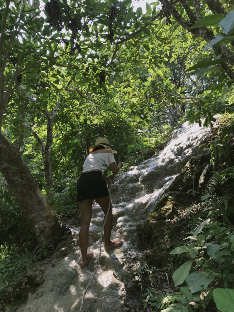 ยี่สิบกว่ากิโลจากแม่แตงมาน้ำตกบัวตอง น้ำพุเจ็ดสี ที่ลุงบอกจะพามาโดยบอกเชิงบังคับกูให้มา เออไปก็ไปค่าลุง วินาทีนี้กุเอาให้คุ้ม! น้ำตกเป็นหินปูนทำให้การปีนขึ้นไปไม่ใช่เรื่องยากเท่าไหร่ แต่บางจุดก็แอบลื่นนะ ต้องระวังให้ดี มีไกด์อีกคนที่ไม่ค่อยพูด บริการดี คอยถือรองเท้าเรากับเพื่อนตามหลังมา ปรบมือออ