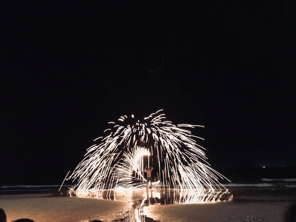 ขณะนี้เวลาหนึ่งทุ่มครึ่ง! เห้ยยยยยมึงอาบน้ำแต่งตัวไปดูโชว์ควงกระบองไฟกันที่พลอยทะเล เจ้าของที่พักแนะนำให้เดินไป พลอยทะเล เป็นร้านอาหารที่มีโชว์ยิ่งใหญ่และสวยงามตามรูปเลยค่ะ เขาจะโชว์ในร้านเหมือนเรียกน้ำย่อยก่อน พอประมาณสองทุ่มกว่ากว่าเล่นใหญ่จ้า ไปควงไฟริมทะเล จัดจ้านนนในย่านเสม็ดเด้อ!