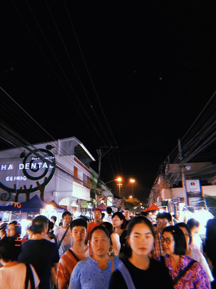 ตกเย็น พลังเหลือเฟือไปถนนคนเดินวัวลายกัน เป็นถนนคนเดินที่ยาววจนเรากับเพื่อนต้องยอม เดินกลับจ้าไม่ไหว คือเดินไปเรื่อยยก็ยังไม่หมดอะ เลยตัดสินใจเดินกลับเพราะมีแต่ของซ้ำซ้ำด้วย แต่ที่นี่เก๋นะมีของทำมือเยอะและถูกกก
