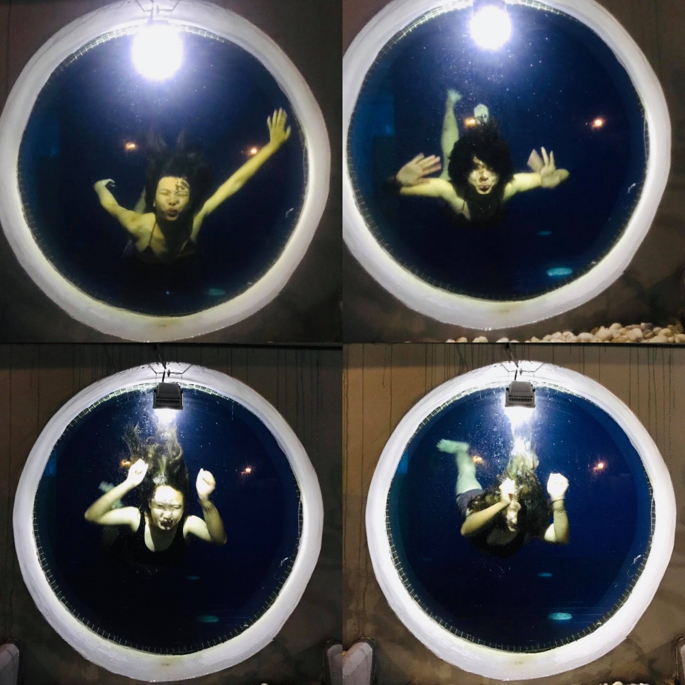 ตกเย็นเรากลับมายัง แพนโดร่ารีสอร์ท ขอโม้ว่าสระว่ายน้ำเก๋ไก๋ที่สุดในเสม็ดแล้วจ้า เก๋ยังไง! มาดูกัน ก็เพราะเป็นสระที่มีเครื่องซักผ้าฝาหน้าจ้า แฮ้ะ ไม่ใช่ละมันคล้ายคล้าย/ เป็นสระน้ำเค็มที่มีปล่องใสใสไว้ให้เราถ่ายรูปใต้น้ำแบบชิคชิคประมาณสามสี่ปล่อง กรูและเพื่อนว่ายผ่านตรงนี้รวมกันน่าจะเป็นร้อยรอบอะ กินน้ำเค็มน่าจะหลายลิตร ฮาฮา