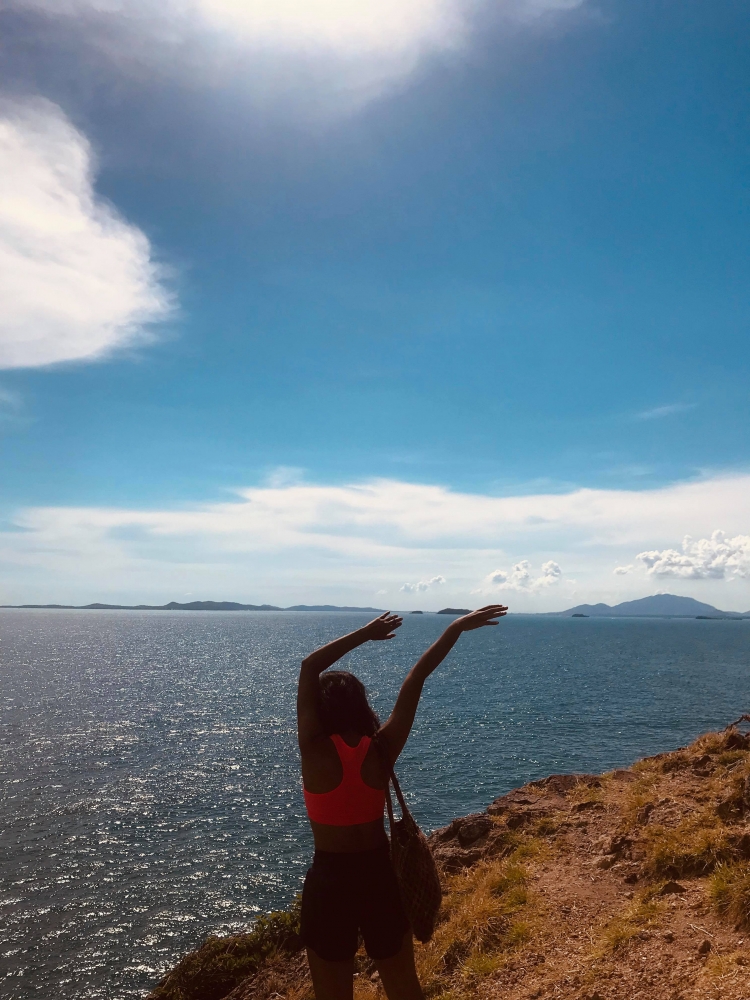 เรือมาจอดทานอาหารกลางวันแถวเกาะทะลุ หลังทานเสร็จเรากับเพื่อนปีนเขาขึ้นจุดชมวิว ไปดูวิวด้านบน ระยะทางกิโลกว่าได้ละมั้งนิดเดียว แนะนำให้ขึ้นมาคนไทยไม่ค่อยขึ้นหรอก มีแต่ฝรั่ง นี่ก็ปีนตามฝรั่งมาชอบแฝงตัว ฮ่า ขึ้นมาถึงดิชั้นก็ร้อง ว้าวววยาวมากก มันดีอะคุณวิวข้างหน้ายังกะต่างประเทศ หน้าผาข้างข้างถูกน้ำเซาะได้อย่างสวยงามแบบฉบับธรรมชาติรังสรรค์ ที่สำคัญน้ำทะเลสีน้ำเงินคลื่นเรียบเรียบท้องฟ้าสีสดใส มีเมฆน้อย โคตรสวยเลย!! เพื่อนมันบอกอยากตะโกน นี่ก็เลยบอกเอาดิ มันตะโกนว่า เกาะ-ทะ-ลุ!!! แบบก้องมากก มันสุดจริงจริงอะ บ่งบอกความเป็นอิสระที่ไร้ขีดจำกัดใดใด น้ำตาไหลแล้วววฮ่าฮ่า
