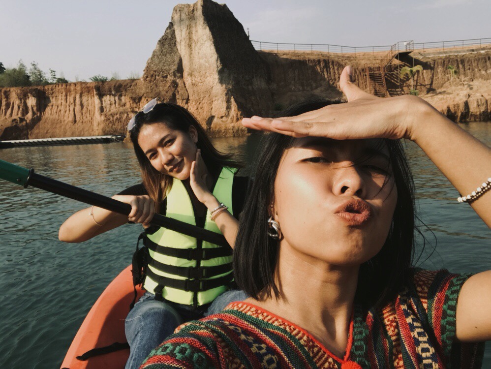 ตื่นเช้ามาทานขนมปังปิ้ง นมสด ซีเรียล กล้วยของโฮสเทล อิ่มแปร่เลยย /เช็คเอ้าท์ละเดินไปขนส่งช้างเผือกเพื่อไปหาผู้ร่วมเดินทางจากเมืองเจียงฮาย ใช่แล้วค่ะทุกคนวันนี้เราจะไม่เหงาแล้ว เราจะมีเพื่อนคุยเม้ามอยหัวเราะขณะเดินทาง มีคนถ่ายรูปให้เย่ เขาคือเพื่อนเก่าเรานั่นเองค่ะ รอนางจนถึงเที่ยง เราก็เข้าโฮลเทลใหม่และจัดแจงของ เช่ารถมอไซต์ ไปมึงไปแกรนด์แคนยอนกัน! ซ้อมก่อนได้ไปเมกา ฮ่าฮ่าา แง้นแง้นด้วยระยะทางกว่าสามสิบกิโลบวกกับองศาความร้อนเกือบทะลุสี่สิบ ไหม้เบาเบาจ้า