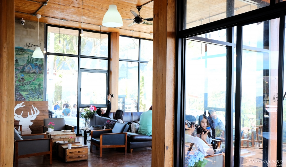 มุมที่นั่งจากภายในร้าน มองออกไปเห็นวิวภูเขาสวยงามมาก รับกับอากาศเย็น คุ้มค่ากับที่ขับรถมาจริงๆ