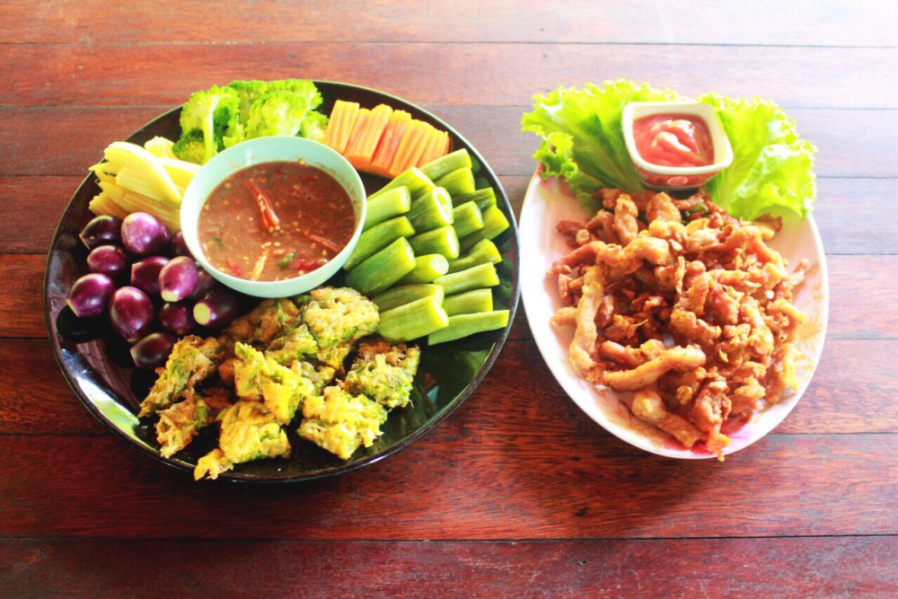 เมนูหมูทอดและน้ำพริกผักต้ม
