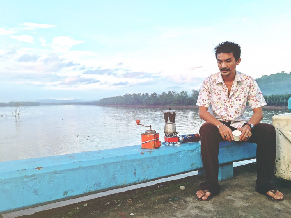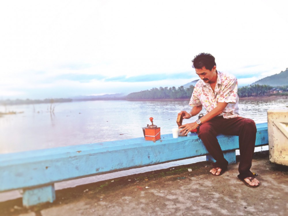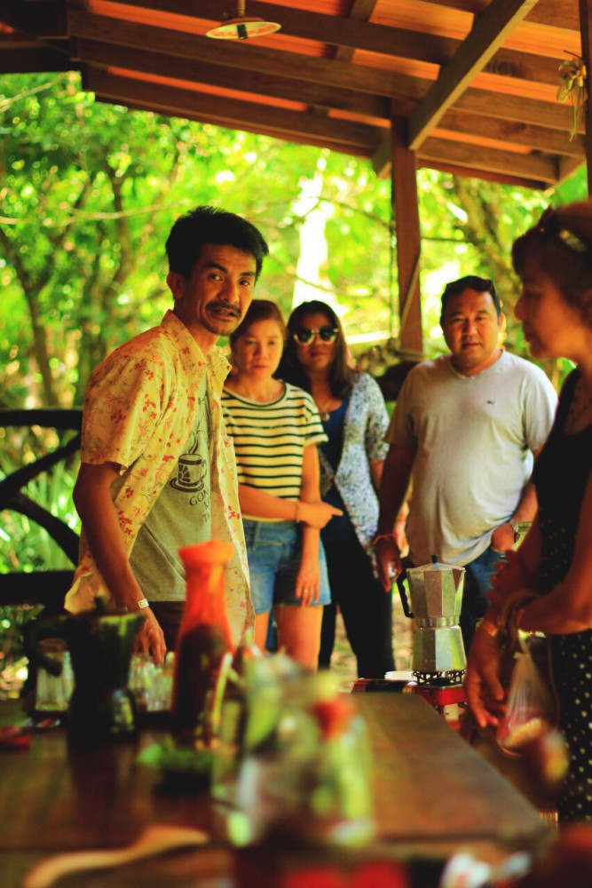 พวกเรานั่งชมบรรยายกาศยยามเช้าของกระบุรีตามภาษานักท่องเที่ยว...แต่พี่ก้องเค้ามาที่นี่พร้อมกับเพื่อนคู่ใจคือ อุปกรณ์ทำกาแฟชนิดพกพา พี่ก้องนั่งบดกาแฟ ชงกาแฟ แล้วก็แจกกาแฟให้คนระแวกนั้นดื่มด้วยกัน อินดี้เสียงจริงตัวจริงเลย อิสระ เป็นตัวของตัวเองสุดๆ