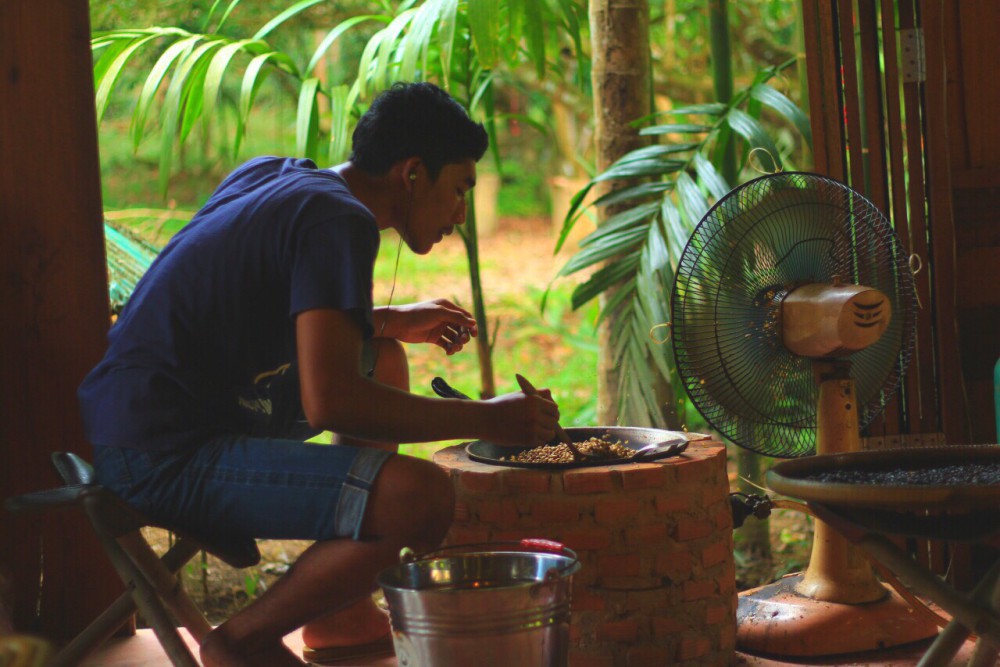 พี่ก้องพาไปที่หมู่บ้านอิ่วเมี่ยน เป็นชนเผ่าที่อพยพมาอยู่จ.ระนอง ทั้งนี้ชาวอิ่วเมี่ยนเป็นศิษย์รุ่นแรกที่พี่ก้องสอนปลูกกาแฟตลอดจนขายกาแฟ ทุกวันนี้คุณลุงมีอาชีพเลี้ยงดูครอบครัวได้เป็นอย่างดี ด้วยธุรกิจการทำกาแฟเล็กๆ ในครัวเรือน
