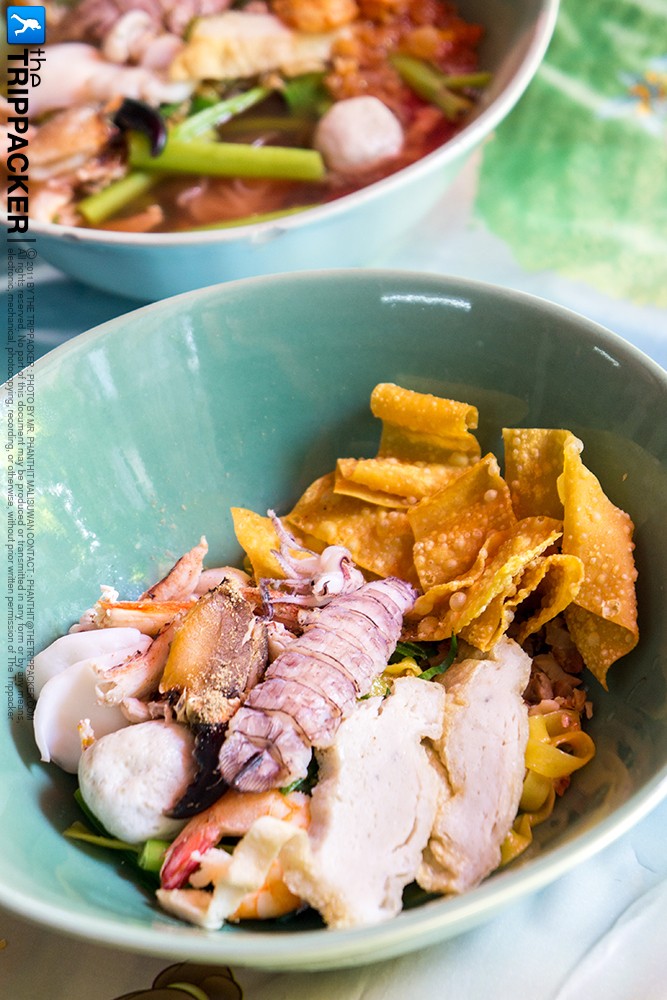 “หิวๆๆๆๆ” เลยเวลาอาหารกลางวันมาหลายชั่วโมงแล้ว ยังไม่มีอะไรตกถึงท้องเลย งานนี้ทั้งกระเพาะทั้งคนก็ส่งเสียงครวญครางกันยกใหญ่ แถมเรายังพลัดถิ่นมาอยู่ ณ ใจกลางเมืองตราดอันแสนจะคุ้นเค๊ย!! (ซะเมื่อไหร่) ก็ยิ่งนึกไม่ออกว่าจะวิ่งไปหาของอร่อยที่ไหนดี พอท้องยิ่งร้อง สมองก็ยิ่งต้องเร่งทำงาน เรื่องกินนี่ใครว่าเรื่องเล็ก จะกินทั้งทีอย่าหวังว่าจะเอาแค่อิ่ม มันต้องอร่อยด้วยถึงจะตรงตามคอนเซปต์ของ The TripPacker แล้วมตินักเดินทางก็สรุปได้ว่า “ก๋วยเตี๋ยว” แต่รับรองว่าต้องไม่ใช่ก๋วยเตี๋ยวธรรมดาๆ อย่างแน่นอน