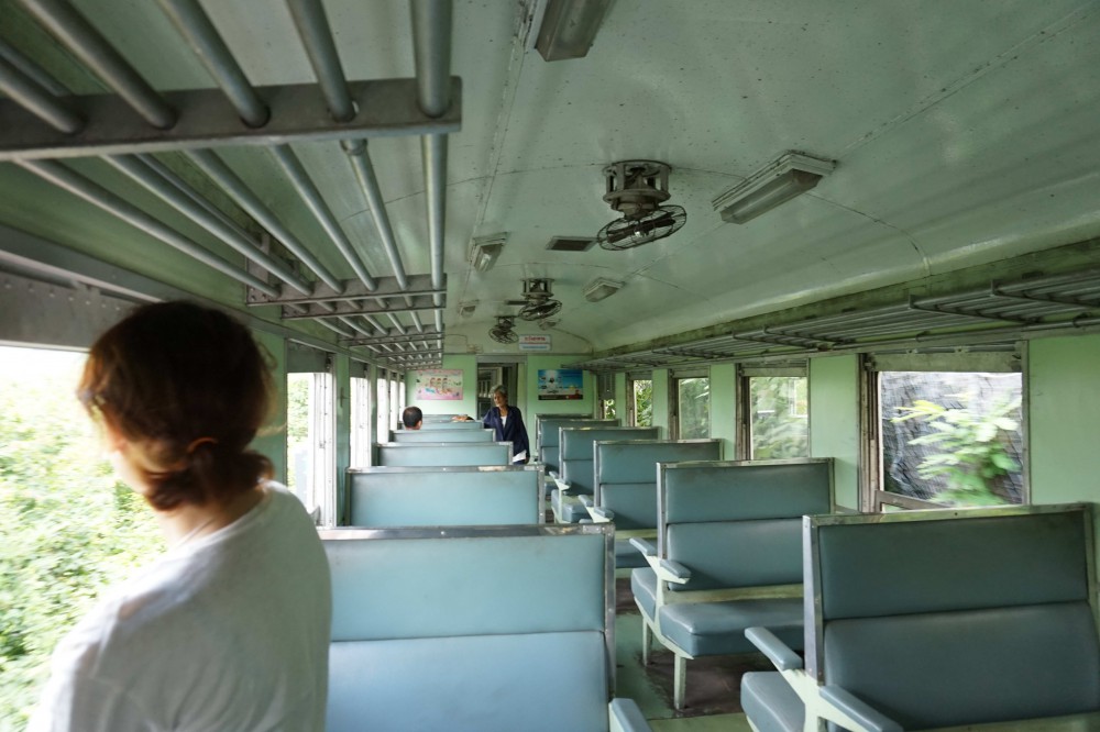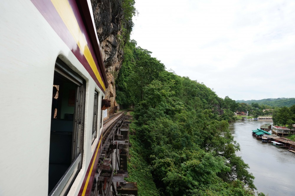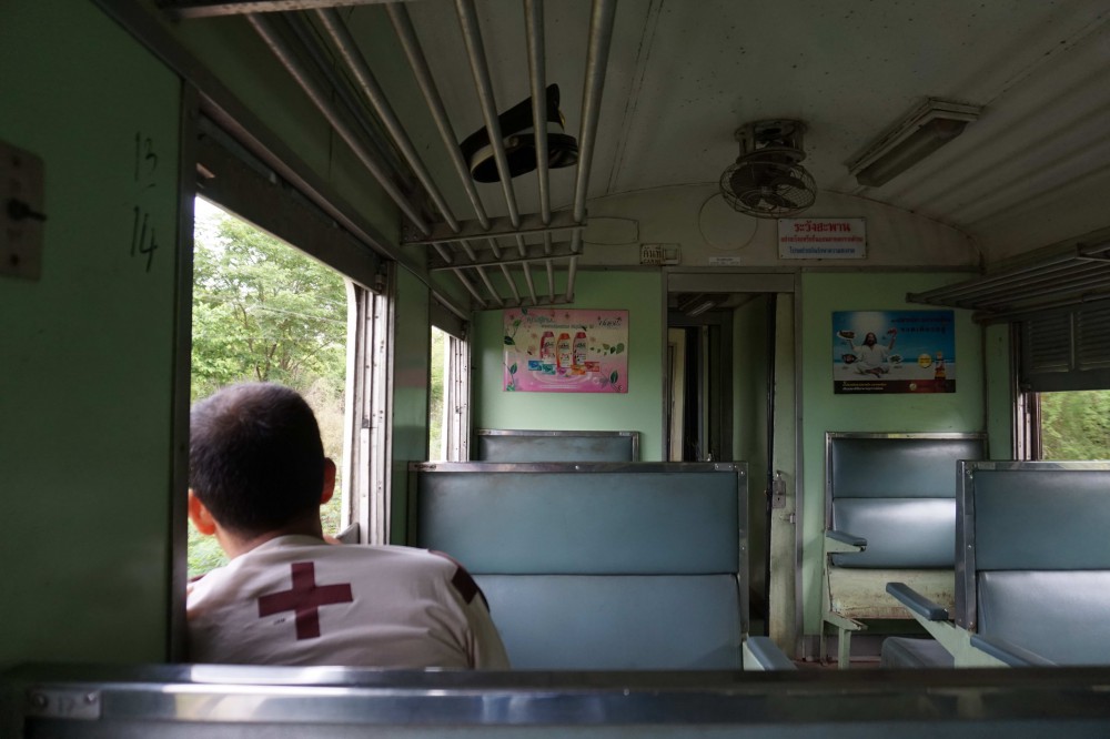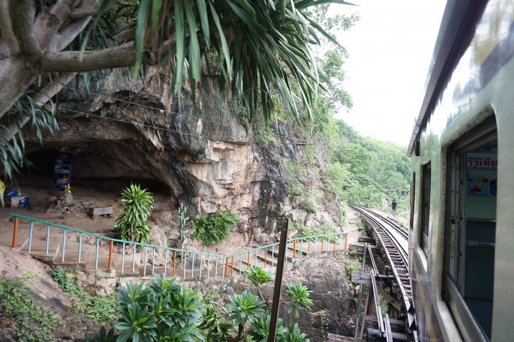 ระหว่างที่เพื่อนหลับไปนั้น เรานั่งโบกี้สุดท้าย มีลุงเจ้าหน้าที่นั่งอยู่ด้วยแกเลยชวนคุยเรื่องความเป็นมาของรถไฟสายนี้ ตั้งแต่สมัยอดีตที่เริ่มก่อสร้างทางรถไฟนี้ แล้วไปโผล่ถึงช่องเขาขาด ข้ามไปพม่า แต่ทางการรถไฟประเทศเราสร้างถึงเพียงแค่สถานีน้ำตก ลุงอยากให้เราเข้าไปดูพิพิธภัฑ์ที่ช่องเขาขาดมาก เราคุยกับลุงไปได้สักพักใหญ่ๆจนเพื่อนตื่น เพราะลุงบอกว่าใกล้ถึงสะพานมรณะแล้ว