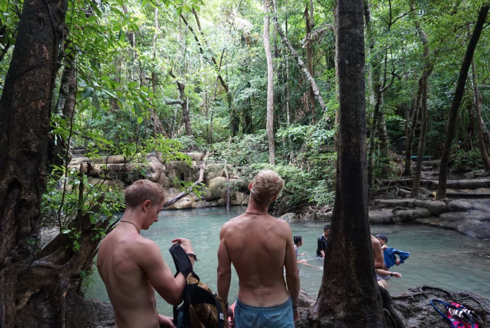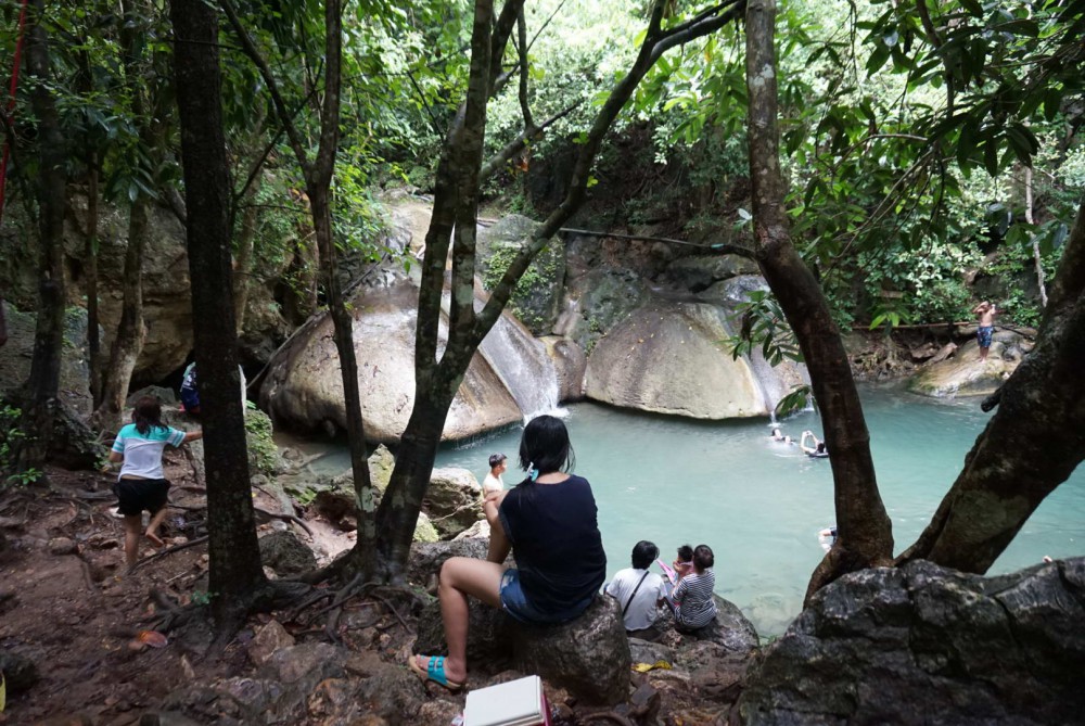 เราปลดกระเป๋าฝากพี่ที่ร้านขายน้ำไว้ เพราะมันเหมือนจะเป็นภาระของเราต่อไปได้ เราจะดินขึ้นน้ำตกกันต่อ