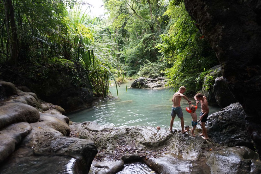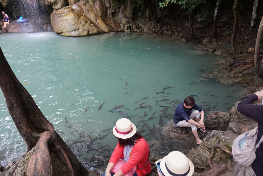 เราไม่ได้ลงไปเล่นน้ำเต็มตัวกันหรอกค่ะ เจอปลาพลวงตอดทีนี้ พ่นสัตว์ออกมาเต็มป่า เลยนั่งแช่ริมๆน้ำ