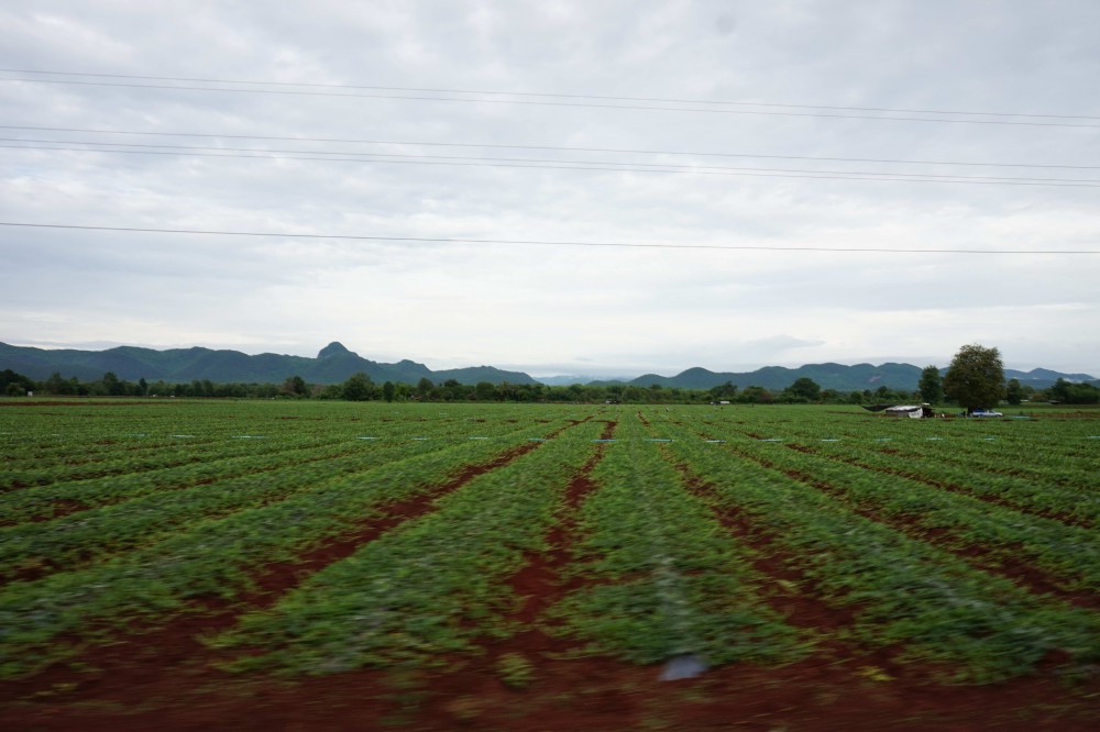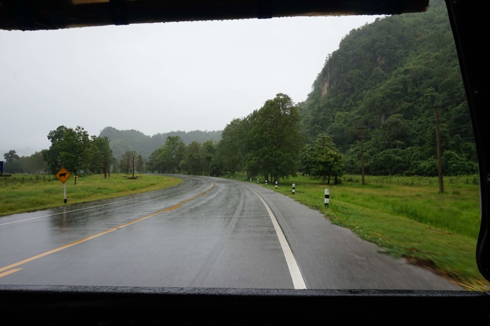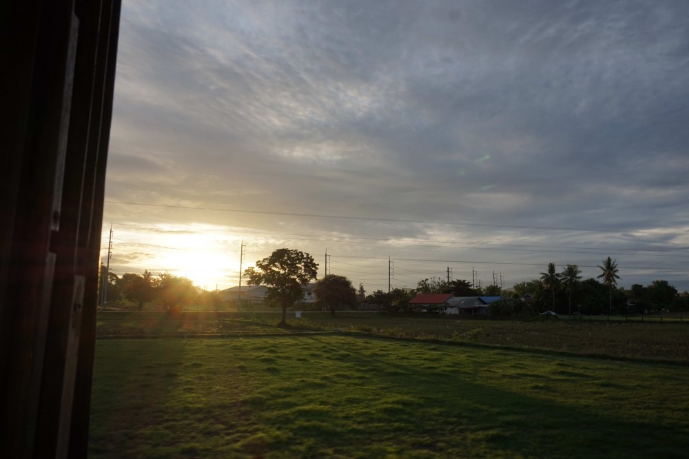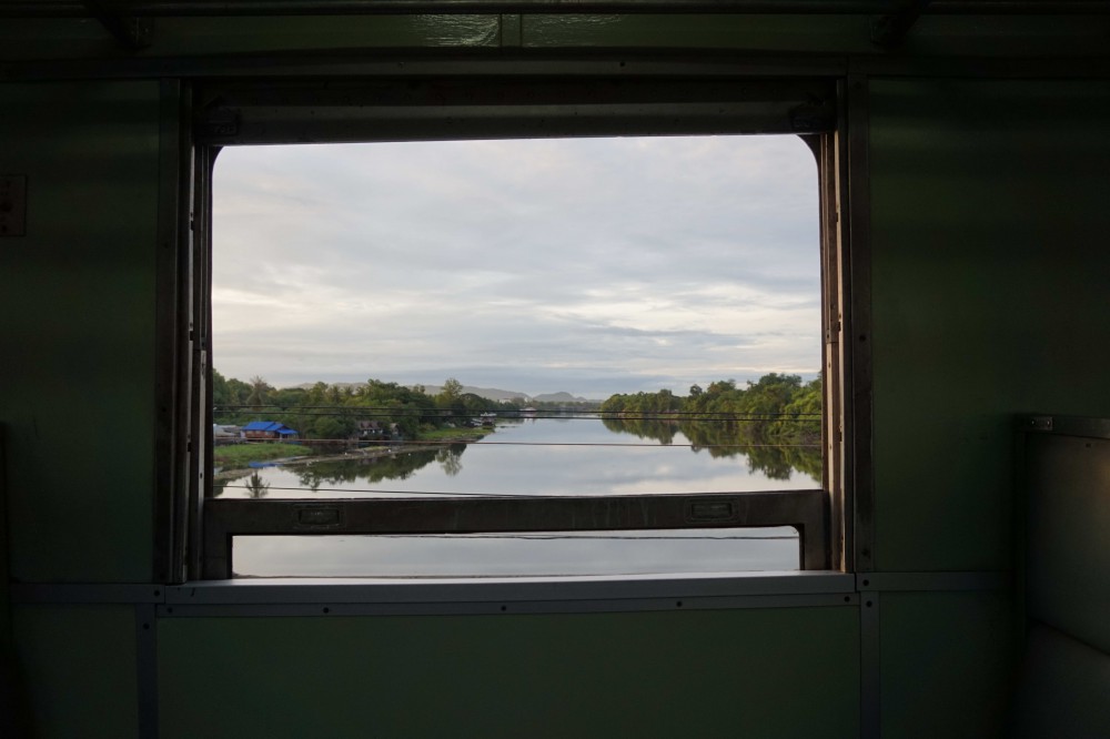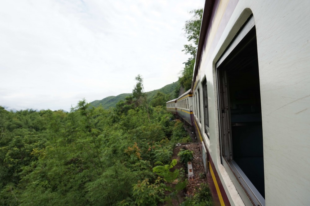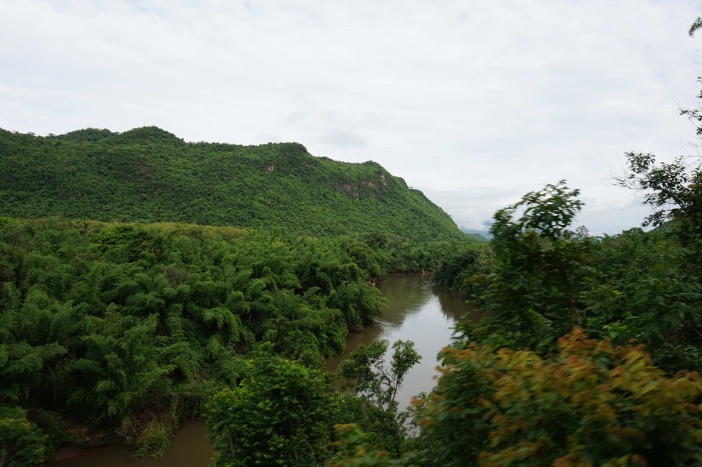 วิวข้างทางหลังจากออกสถานีสะพานข้ามแม่น้ำแคว เหมือนฝนตกไปเมื่อคืน อากาศเลยเย็นสบายสำหรับการนั่งรถไฟ