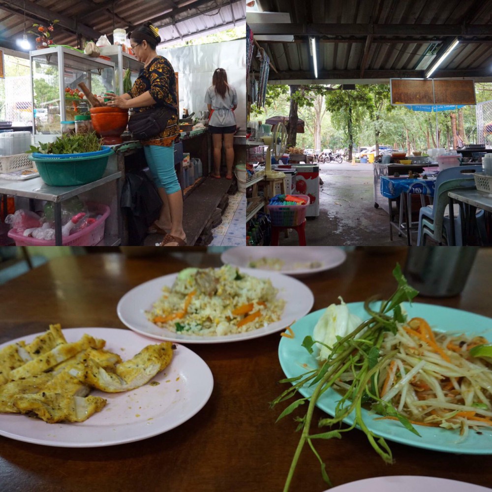 เหมือนหมูปิ้งเมื่อเช้าของเราจะหมดฤทธิ์กันแล้ว เลยขอซัดข้าวกันก่อนเดินขึ้นน้ำตก รสชาติถือว่าดีนะหรือว่าหิว กินไม่ถึงสิบนาที 5555555 มีรถบริการพาเข้าไปนะ คนละสามสิบบาท แต่เราเดิน ไม่มีข้ออ้างใดๆเกิดจากการงกนั้นเอง