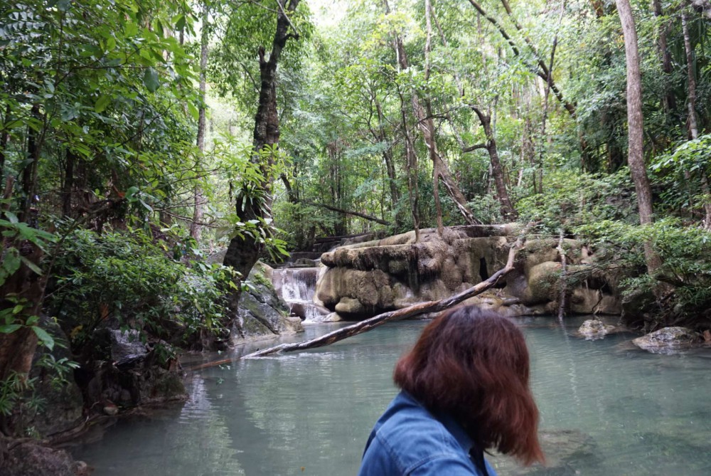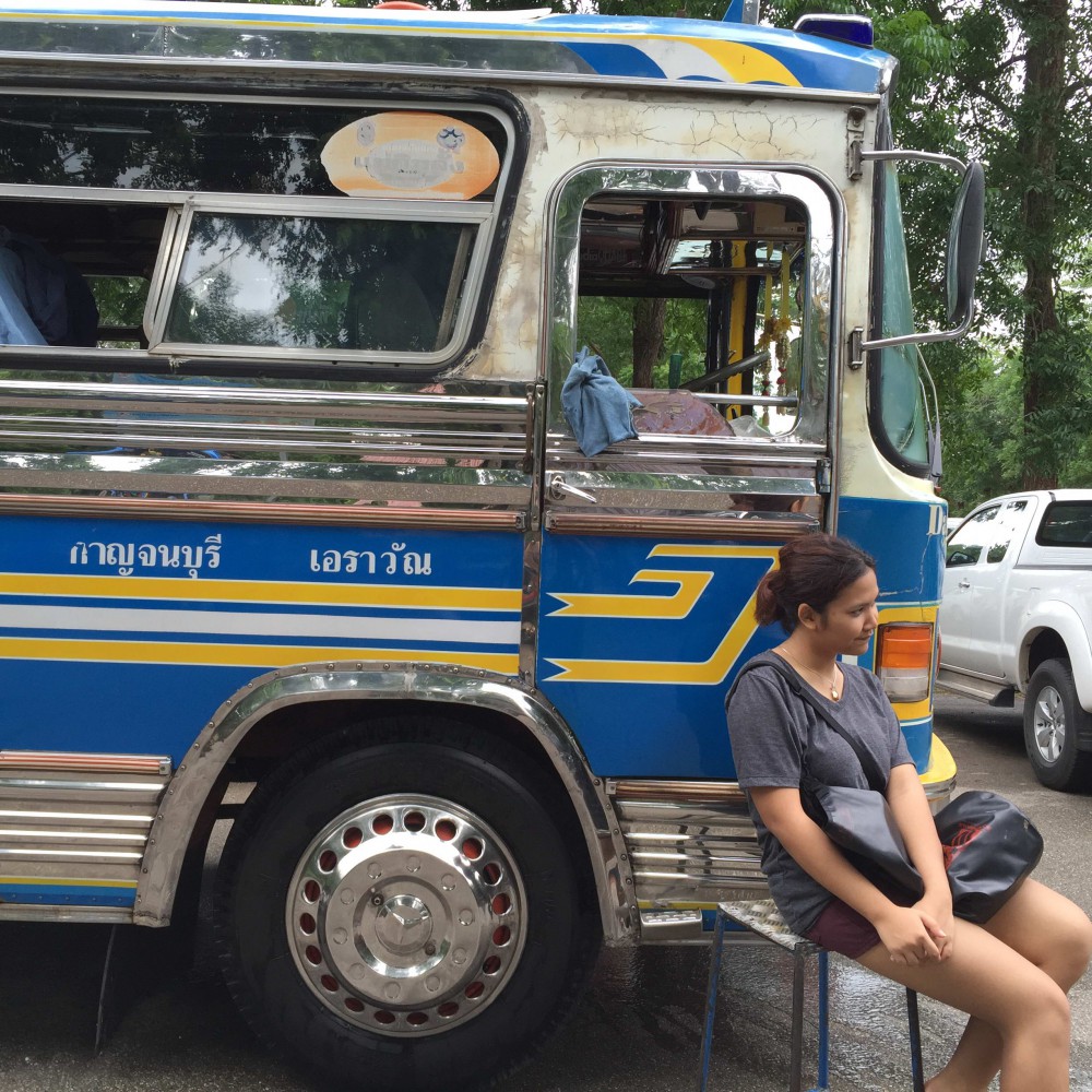 วันนี้เราจะไปน้ำตกเอราวัณกัน ขึ้นรถที่บขส.เป็นรถหวานเย็น ลมโกรกตลอดทาง