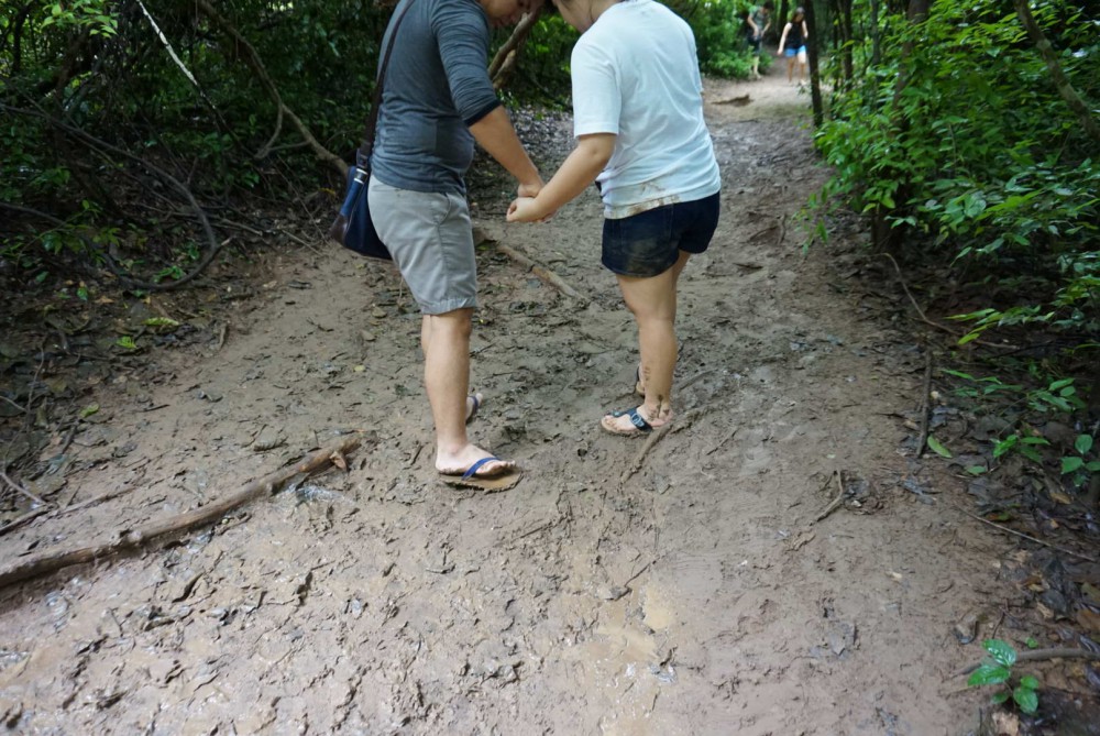 แวะซักแตะแปป ตอนแรกก็ใส่รองเท้าอยู่หรอก หนักเข้าเพื่อนเลยเท้าเปล่าดีกว่า   คนมีคู่เขาก็ดูรักกันดีค่ะ ภาพตัดไปที่เพื่อนรัก โหนต้นไม้เป็นชะนีเลยทีเดียว 5555555555555555555555
