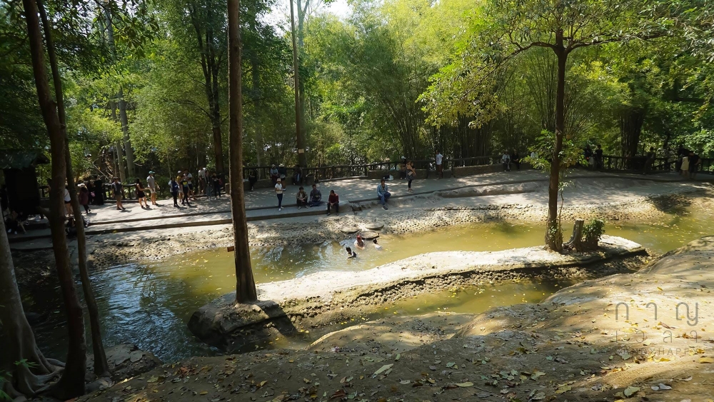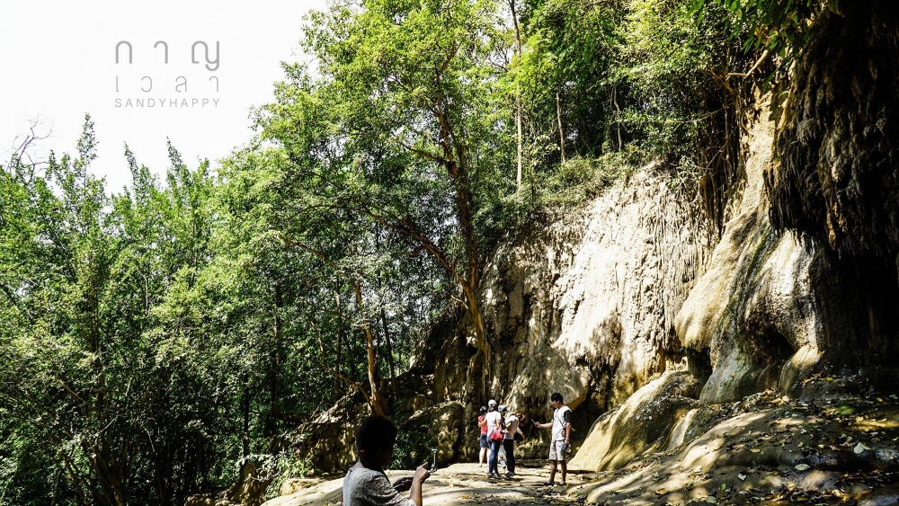 แม่น้ำไทรโยคน้อยตอนนี้ ไม่มีน้ำเลยสักหยด จนคนสามารถขึ้นไปเดินเล่นตรงทางที่เป็นทางน้ำตกได้สบาย
